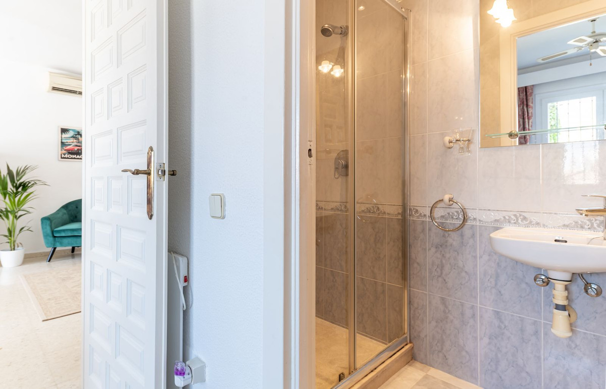 The Master bedroom ensuite is complimented with Mahogany wood furniture with LG TV and offers views to the beautiful Andalucian envirnoment, the ensuite bathroom is equipped with a spacious walk in shower.