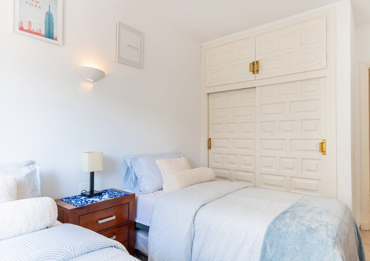 Upon entry, a fully renovated semi open plan dark oak kitchen with high standard appliances is situated on front of a remarkably spacious lounge / dining room complimented with contemporary acacia wood furniture and high standard modern decoration. State of the art treble thickness climatic windows are installed throughout the apartment with Daikin air-conditioning and electric ceiling fans, flat wall mounted storage heaters, high standard light fittings, made to measure curtains, Andalucian sliding railings and original white cream mother of pearl effect polished flooring.