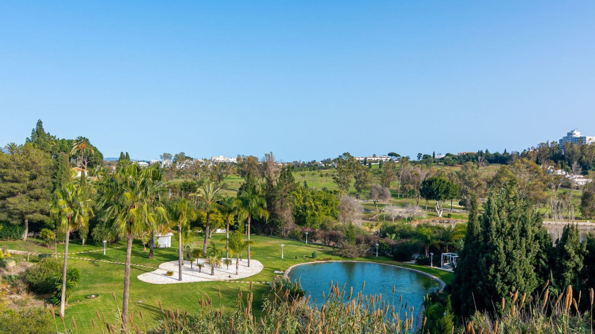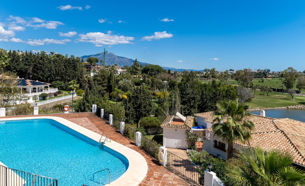 The impressive residents swimming pool offering stunning Golf green and La Concha mountain views is open all year round 24/7.