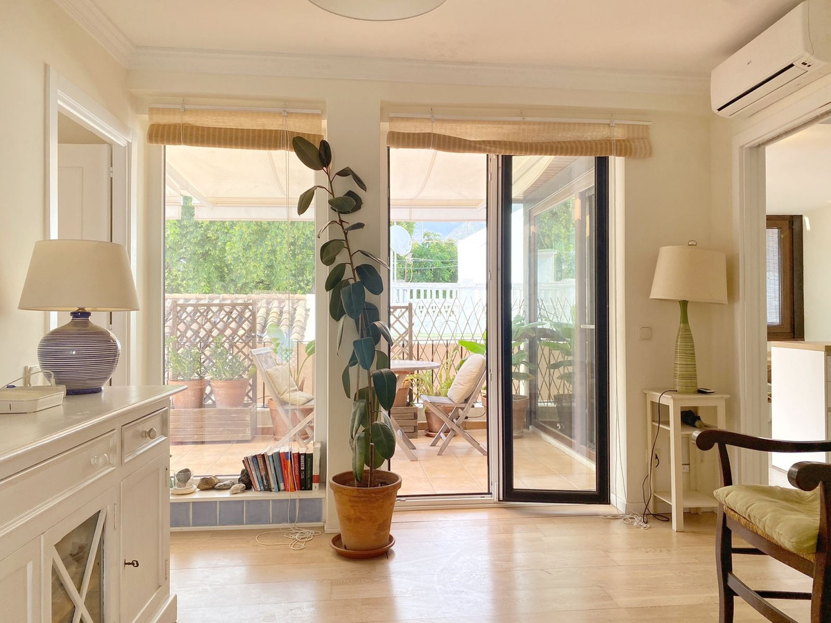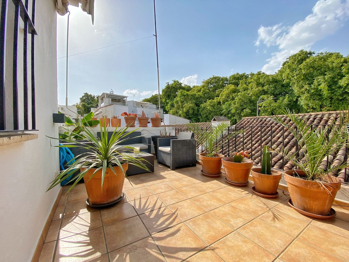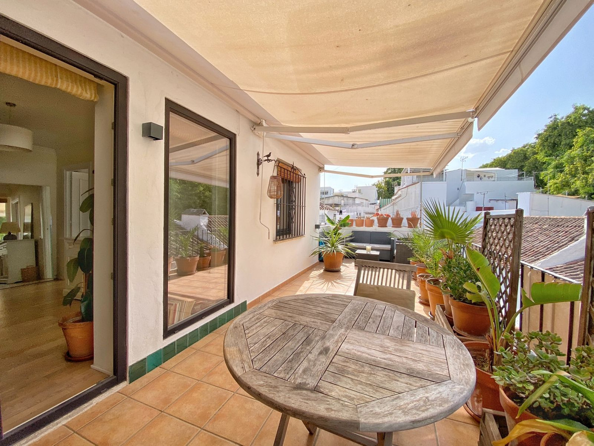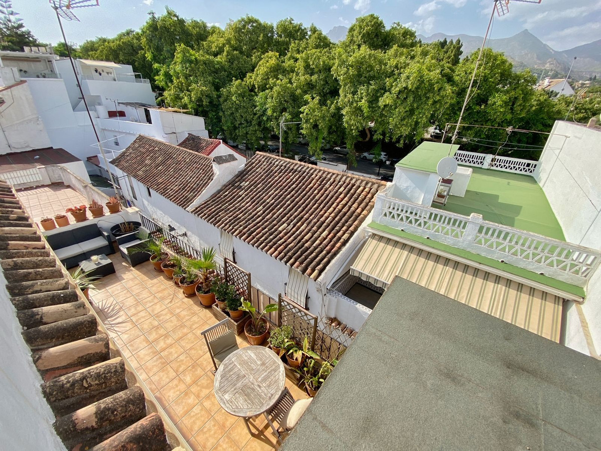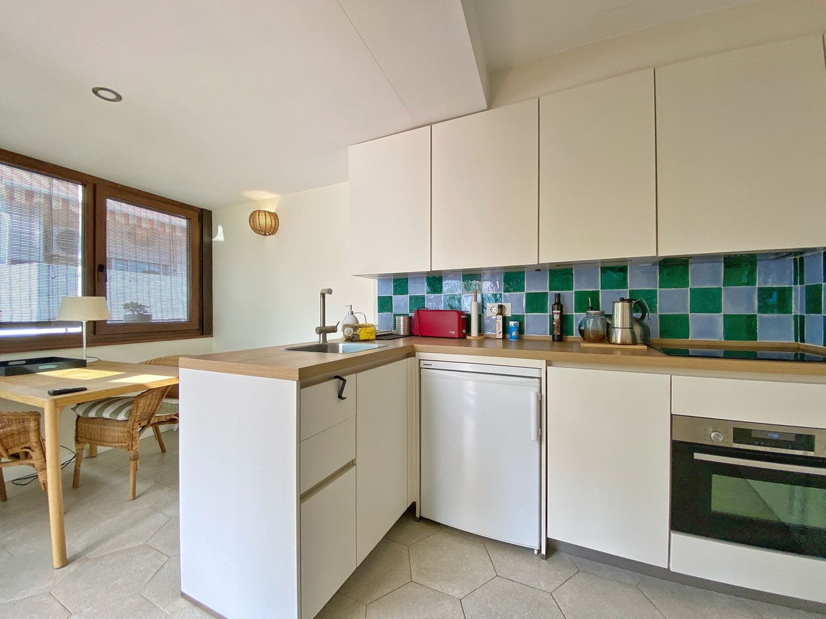 Located on a quiet pedestrian street in Marbella's Old Town, very peaceful and quiet. The apartment has a separate bedroom, a bathroom with a shower and an exterior window, a cozy living room, and a fully equipped kitchen with a dining area, both with direct access to a fantastic outdoor terrace of aprox. 25 sqm, where there are different areas to relax or sunbathe on the sun lounger, or to sit and eat outside.