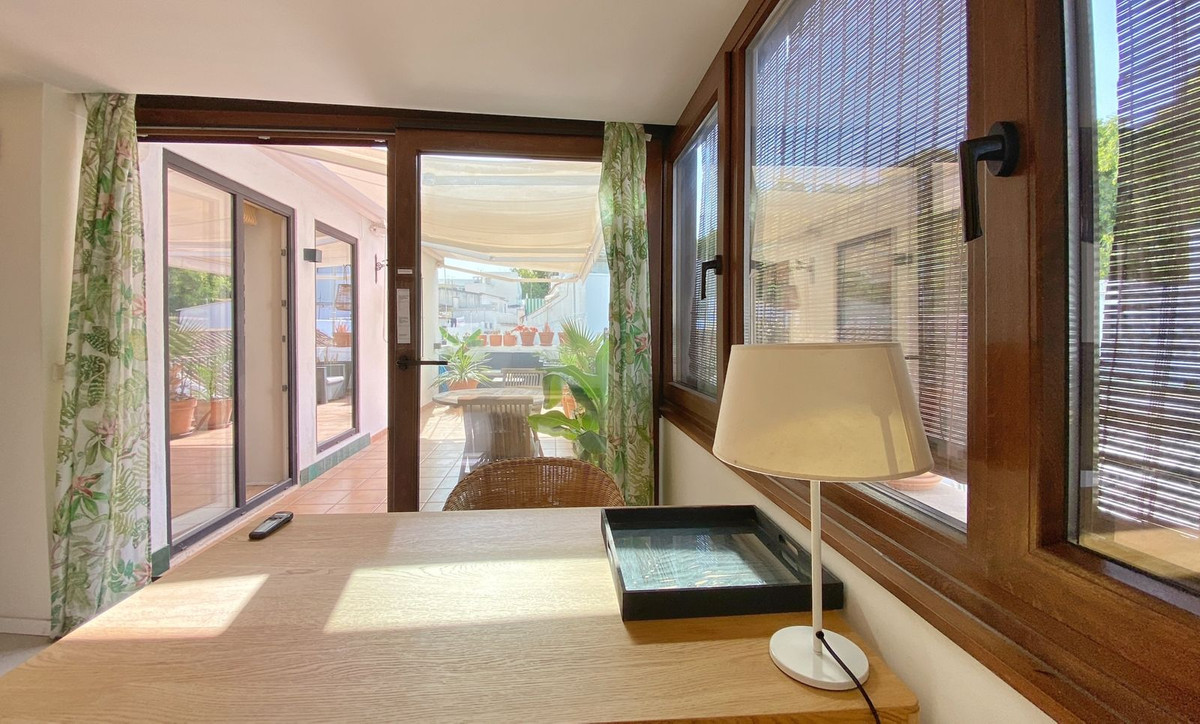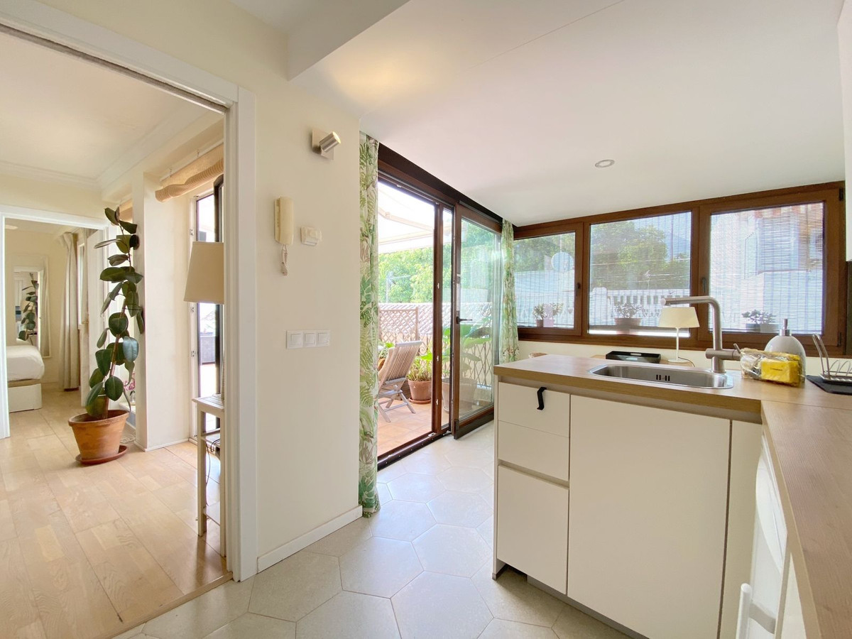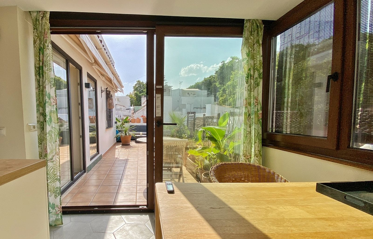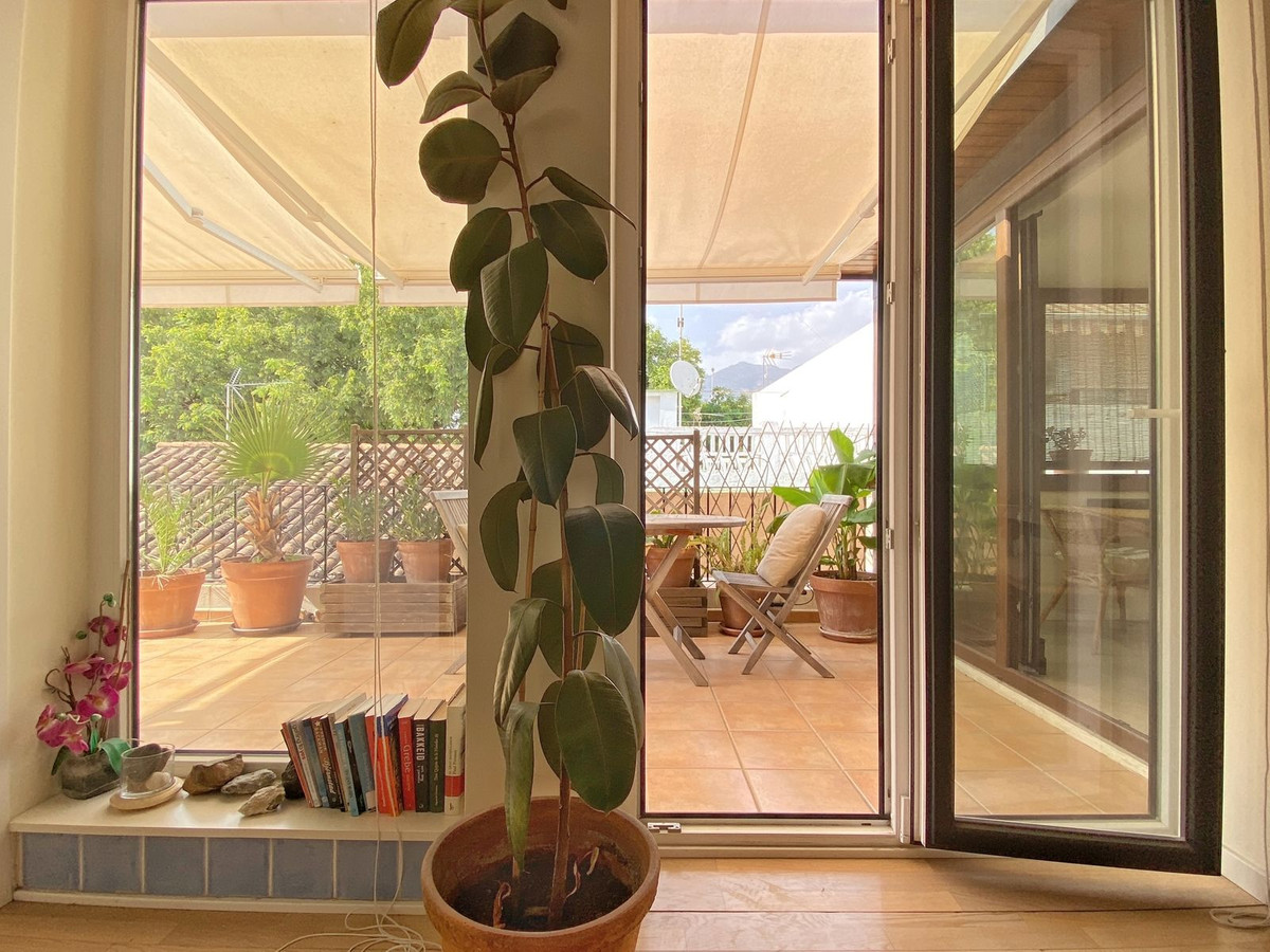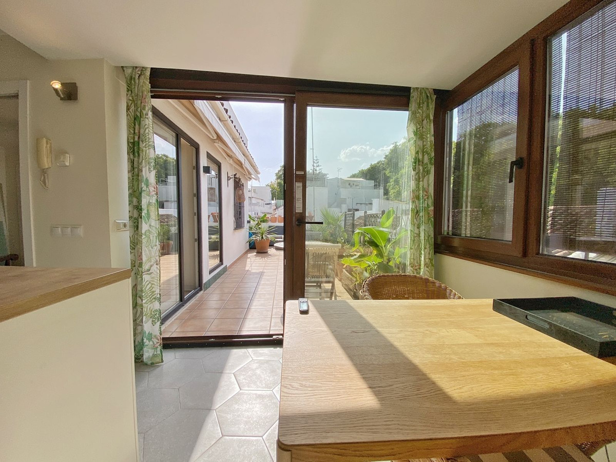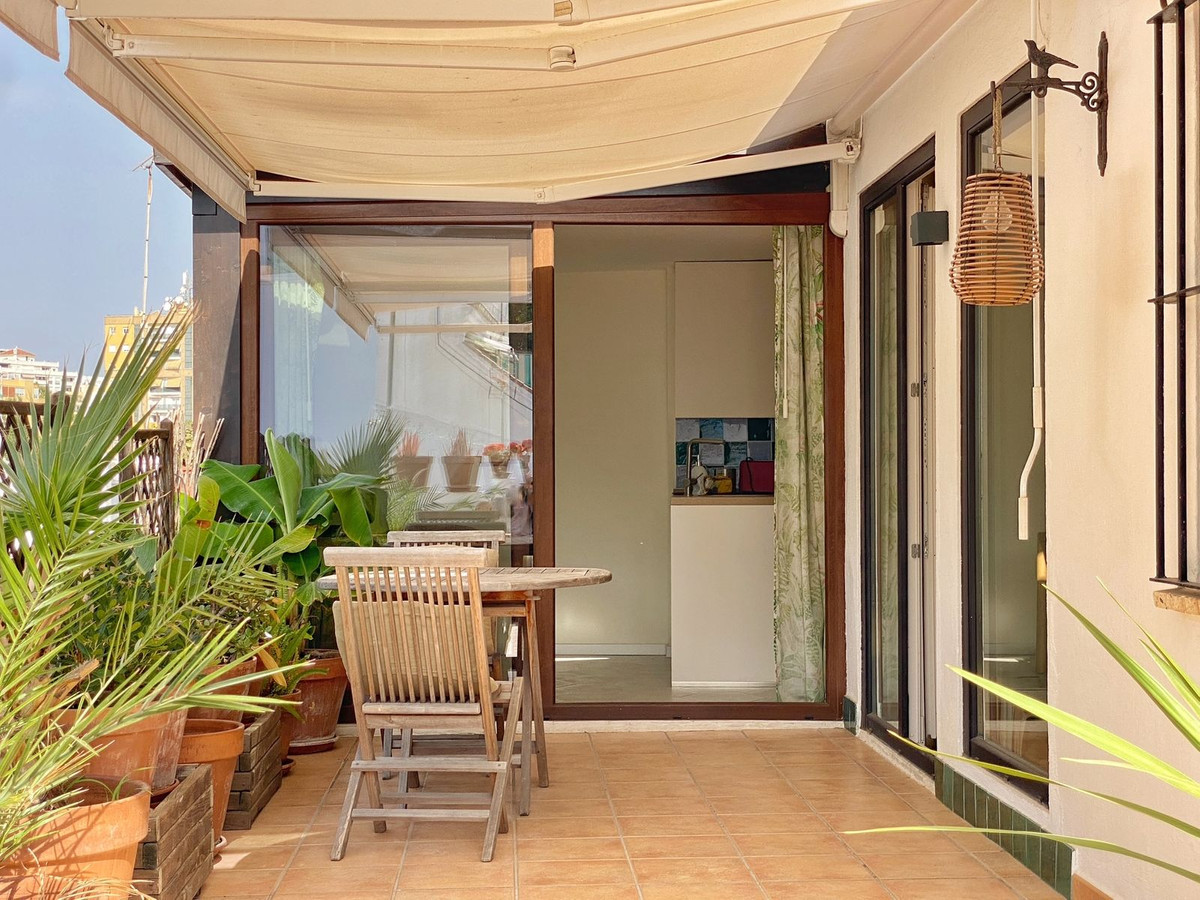 Located on a quiet pedestrian street in Marbella's Old Town, very peaceful and quiet. The apartment has a separate bedroom, a bathroom with a shower and an exterior window, a cozy living room, and a fully equipped kitchen with a dining area, both with direct access to a fantastic outdoor terrace of aprox. 25 sqm, where there are different areas to relax or sunbathe on the sun lounger, or to sit and eat outside.