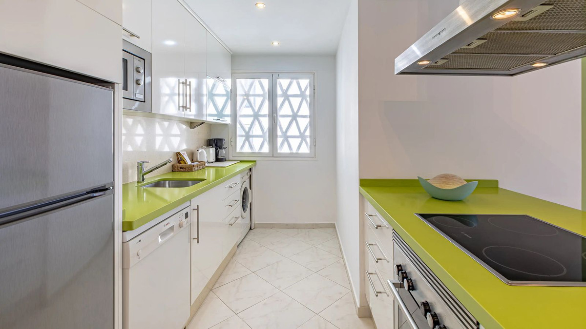 Modern duplex apartment in Puerto Banús with stunning sea views, just steps from the beach, restaurants, luxury boutiques, and all amenities. Featuring two bedrooms (one en-suite), two bathrooms—one with Jacuzzi—a fully fitted open-plan kitchen with breakfast bar, and a bright living-dining area. Finished in marble with new A/C units and satellite TV. The building offers concierge service, night security, and private underground parking.