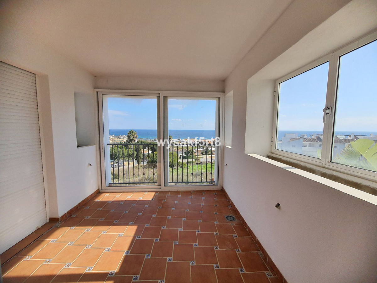 This middle-floor property includes a spacious and bright living room from which you access the 12 m² covered terrace with fantastic Southeast views of the Mediterranean Sea, golf course, and Duquesa port. Two bedrooms, 2 bathrooms. Both bedrooms offer plenty of space and a wardrobe. The master bedroom has an en-suite bathroom and access to the main terrace. There is an additional bathroom next to the second bedroom. Large equipped kitchen. Preinstallation of hot & cold air-conditioning, exterior parking.