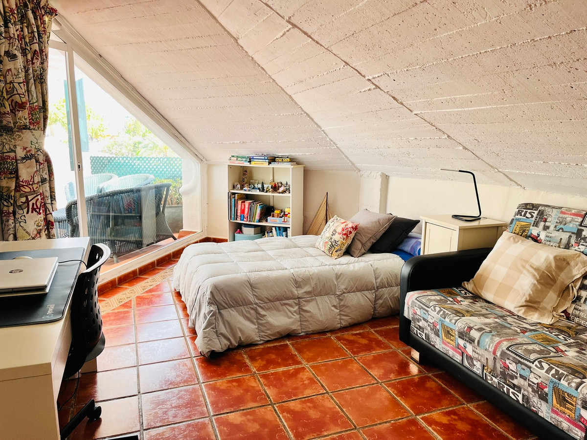 This duplex penthouse consists of two very bright attic bedrooms, a furnished and equipped open-plan kitchen, a full bathroom, a living-dining room with access to the terrace, a covered terrace with a pergola, views of the Old Town and the famous Sierra Blanca (Juanar and La Concha). In addition, as it is a duplex in the upper part of the building, it has a private solarium where you can set up a chill-out area and enjoy 360º panoramic views of the sea, city and mountains. All amenities are within walking distance to make your life easier and more comfortable, such as a pharmacy, supermarkets, restaurants, Ochoa Hospital, etc., so you won't need a vehicle to get around (a real luxury). The building has a lift and a unique location. A unique opportunity. Come and visit!