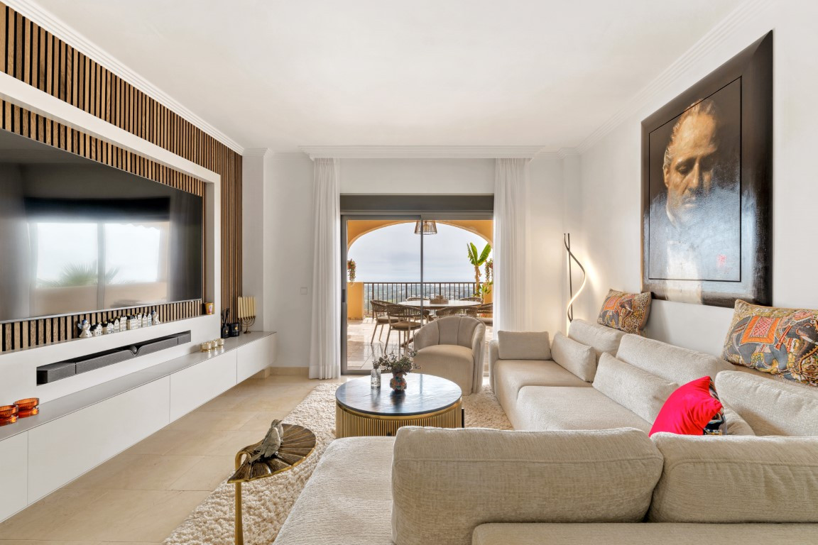 Located in the prestigious Hacienda Señorio de Cifuentes, this stunning apartment offers the perfect balance between luxury, comfort, and nature. Surrounded by renowned golf courses and boasting beautiful panoramic views from its terrace over the Mediterranean Sea and the iconic La Concha mountain, it is an ideal home for those seeking a peaceful retreat in an exclusive setting, without giving up the convenience of being close to all essential services.