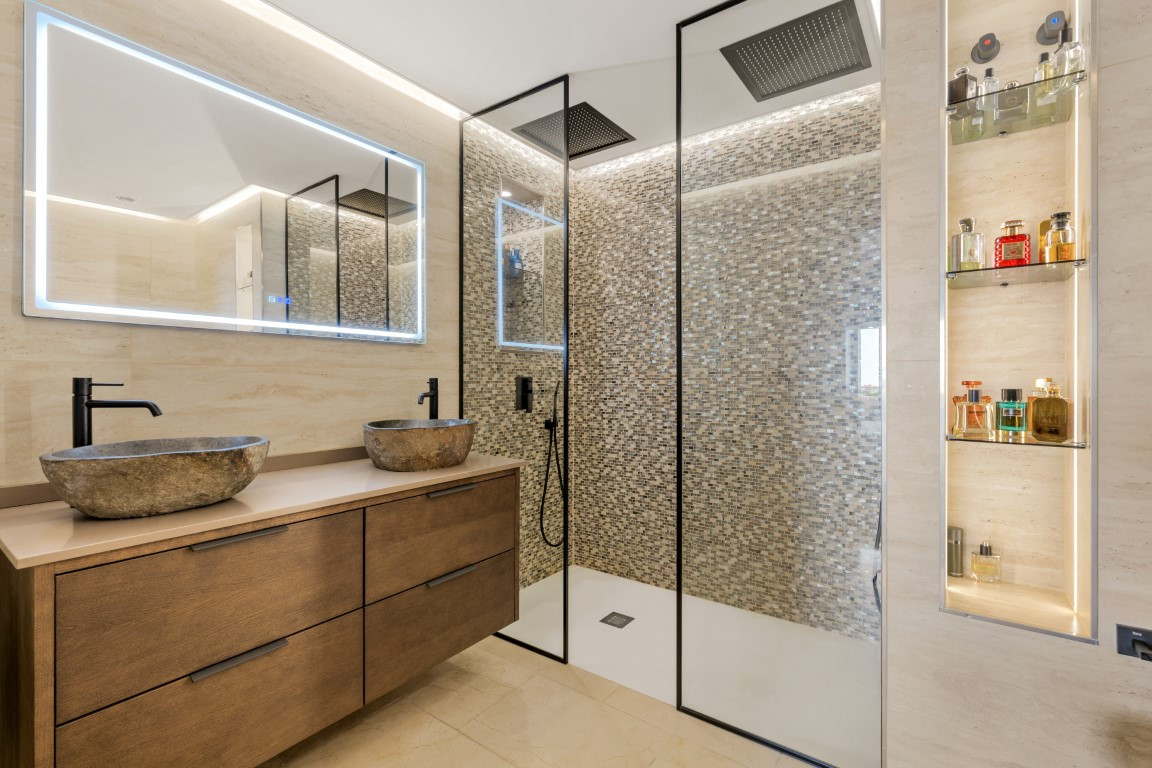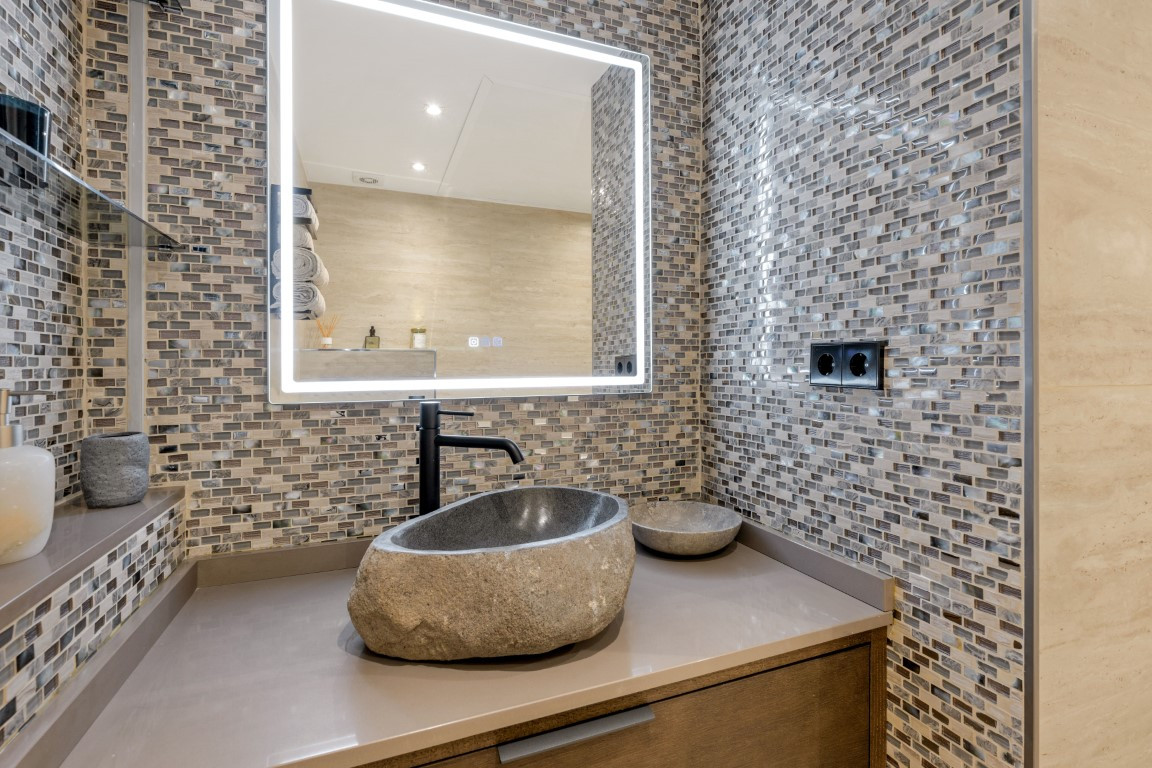 The apartment, fully renovated in 2024, features three bright bedrooms and two bathrooms, and has been designed to offer an elegant, modern, and highly functional living experience. The southeast-facing living room is spacious and filled with natural light, tastefully decorated, and seamlessly connected to a spectacular 44 m² covered terrace where you can enjoy unforgettable moments while taking in the open views of the mountain and the Mediterranean.
