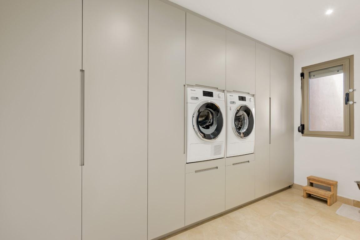 The kitchen is completely new and fully equipped with top-of-the-line appliances, offering a sophisticated and practical space for daily living. As an added feature, it includes a Quooker system that provides instant filtered, sparkling, and boiling water, integrating seamlessly into the sleek design. Additional comforts such as underfloor heating and air conditioning ensure an ideal temperature all year round.
