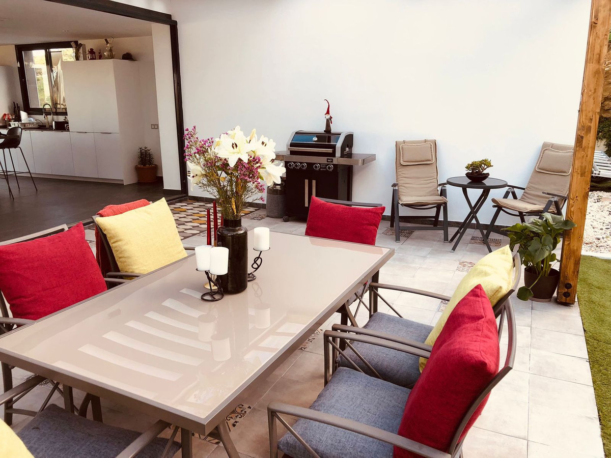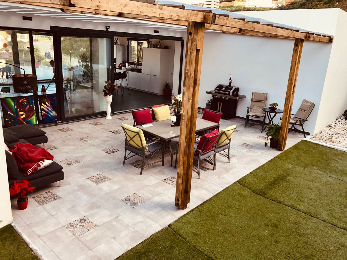 Outdoor living is equally impressive, with a private garden and jacuzzy with a portable pool but there are 2 projects to build a proper 15m x 4m swimming pool, and a terrace area spanning 41m² that offers panoramic views of the surrounding mountains and countryside. The property also includes a covered terrace, a ground floor patio, and an uncovered terrace, providing multiple spaces for relaxation and entertainment. A private garage adds to the convenience, while the presence of a barbeque and jacuzzi further elevates the outdoor experience. The villa’s location is ideal, being close to amenities such as shops, schools, and playgrounds, as well as proximity to the beach, golf courses, and the town centre.