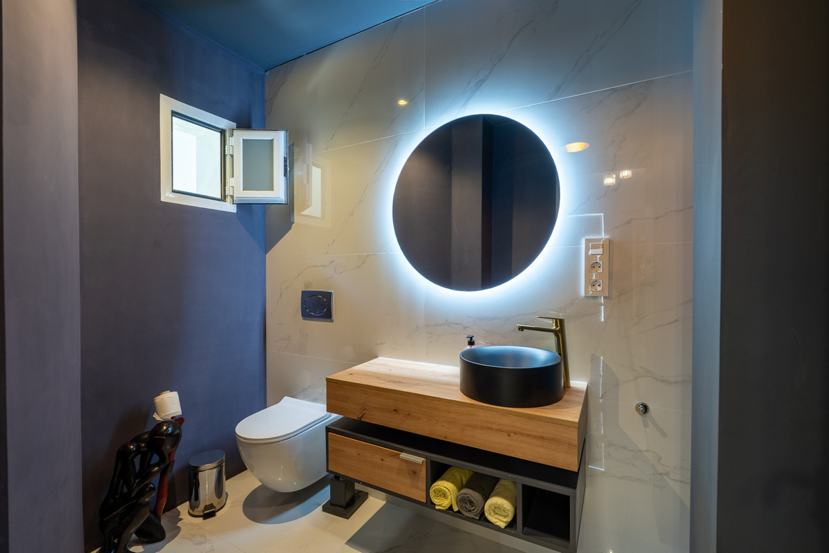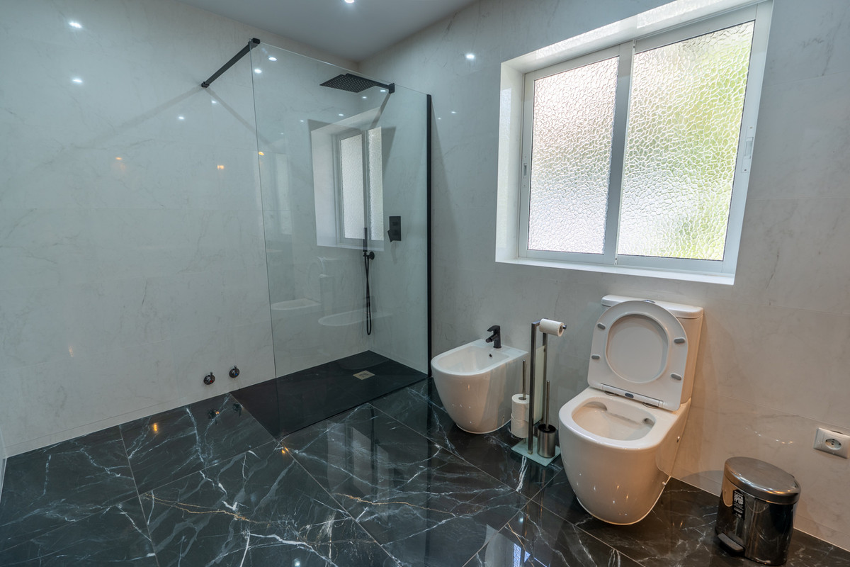 The outdoor spaces are designed for relaxation and entertaining. The villa includes a private swimming pool, landscaped garden, rooftop solarium, several sun-drenched terraces, and a covered dining area with a built-in barbecue. The home also benefits from a private garage, gated access, and a modern security system.