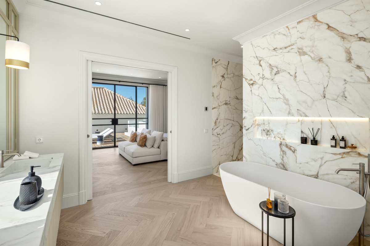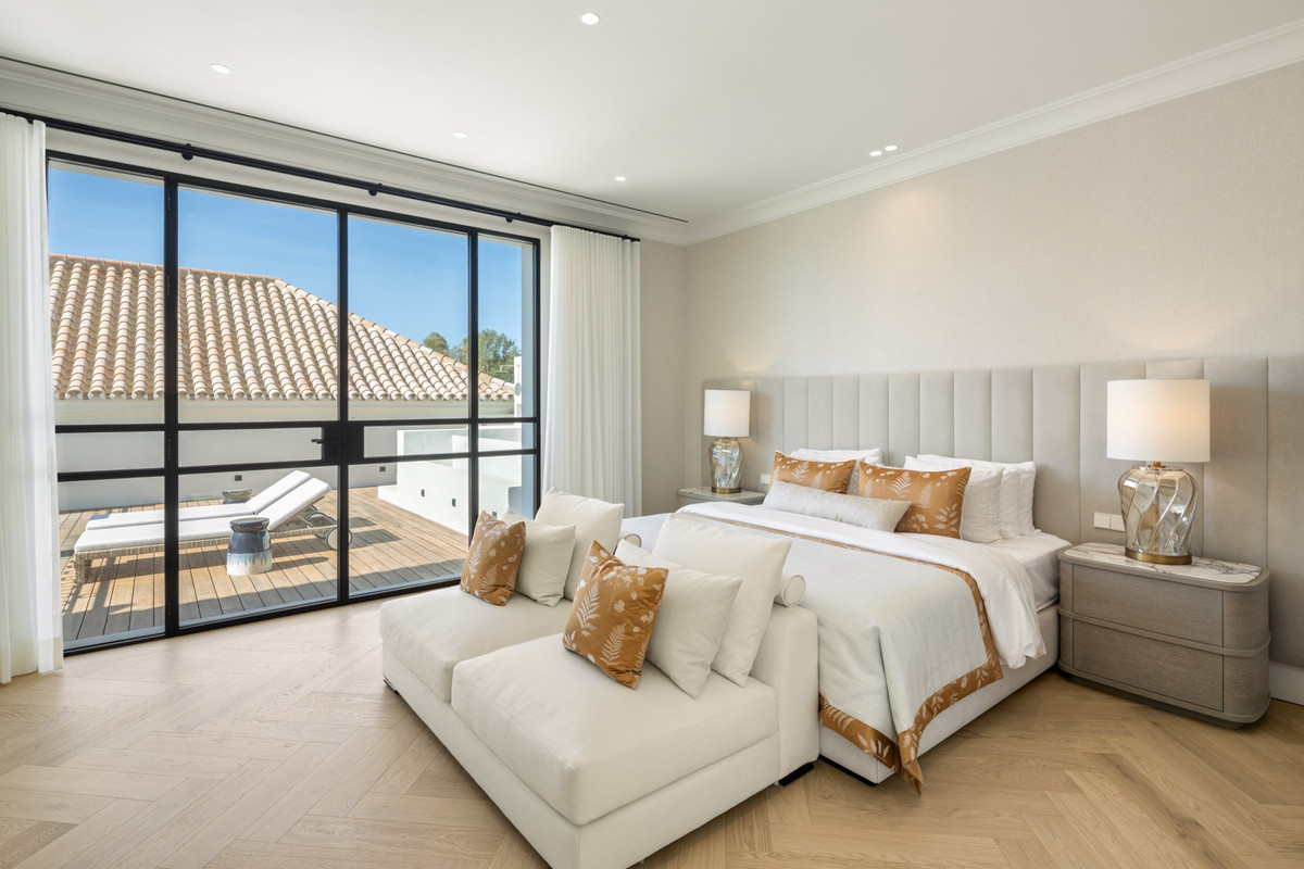 This exceptional luxury villa, located in the prestigious area of La Cerquilla, Marbella, offers an unparalleled living experience with its stunning architecture and high-end finishes. Featuring six spacious bedrooms and six luxurious bathrooms, this home provides both comfort and privacy for all residents.