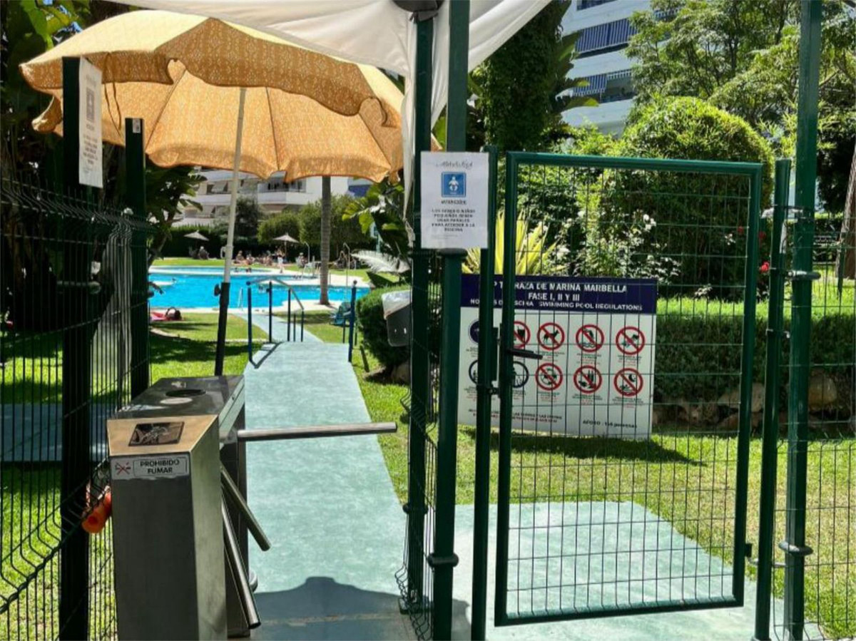 The complex boasts excellent communal facilities: a large main swimming pool with lifeguard service, a children's pool, landscaped gardens, play areas, and a refreshing water feature. Furthermore, it features controlled access for added security.