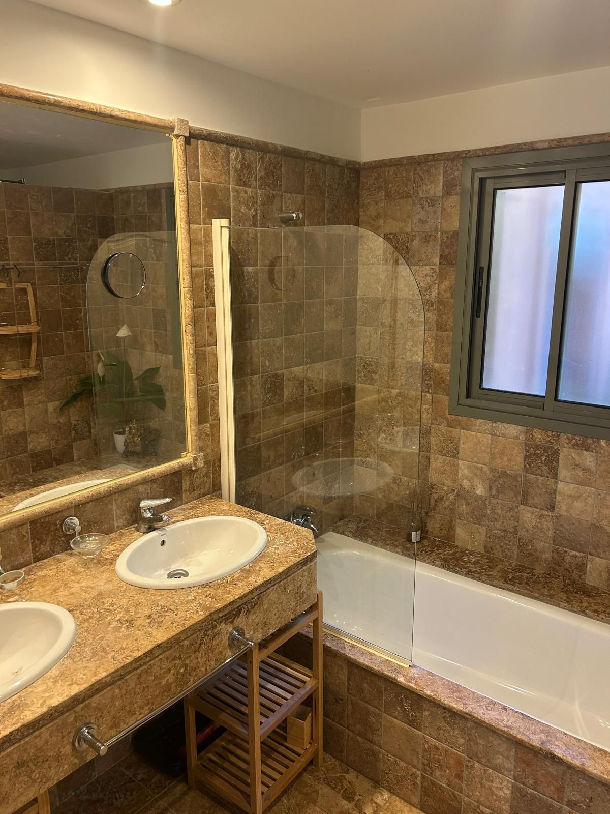 The property features a spacious layout with 3 bedrooms and 3 bathrooms, a bright living room with direct access to the 33 m² terrace and the 28 m² private garden. Fully equipped kitchen with a separate utility room.