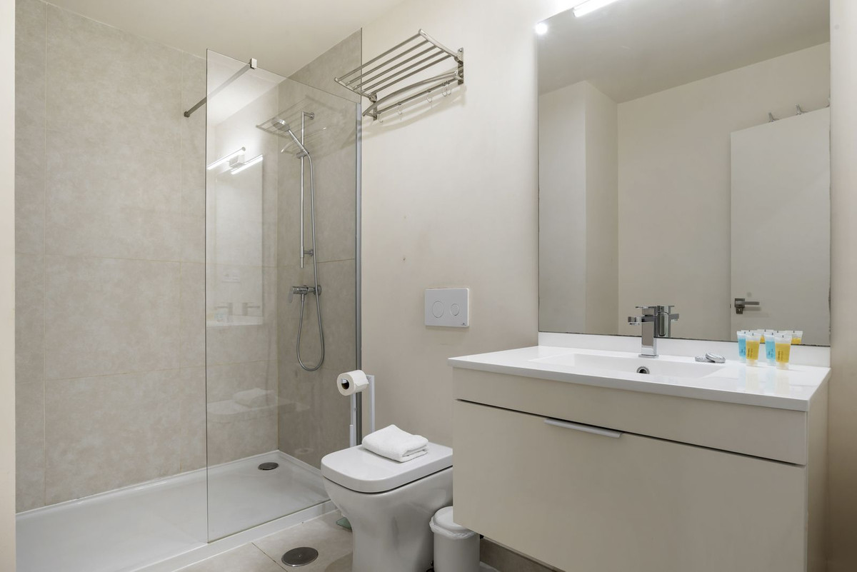 Upon entering, there are two bedrooms with built-in wardrobes and a bathroom located at the back of the apartment. Both bedrooms have access to a small terrace.