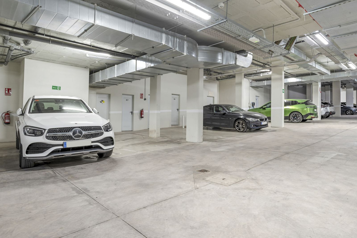 The apartment comes with a spacious storage room and a parking space in the garage. The storage room and private parking space are located next to each other.