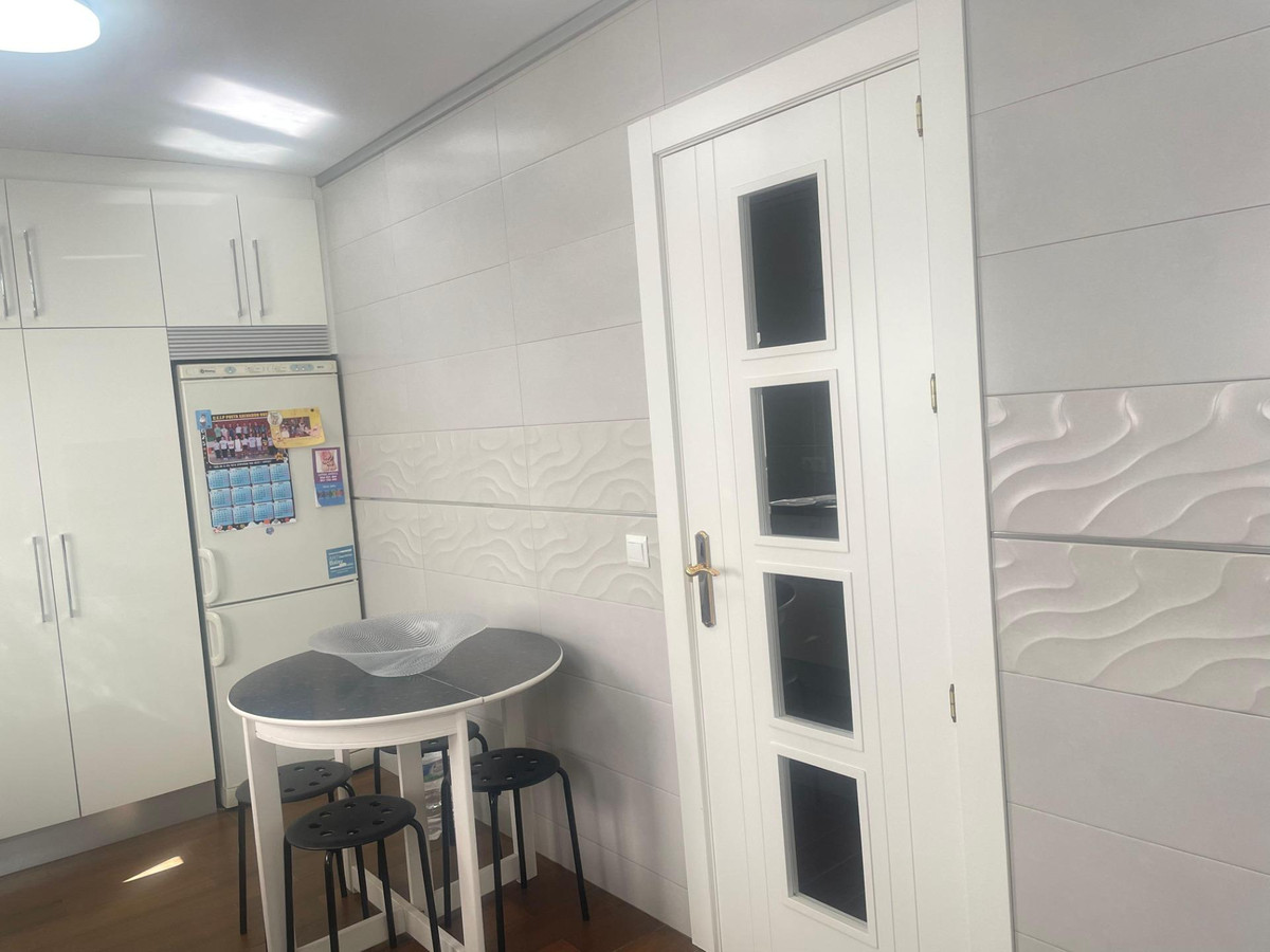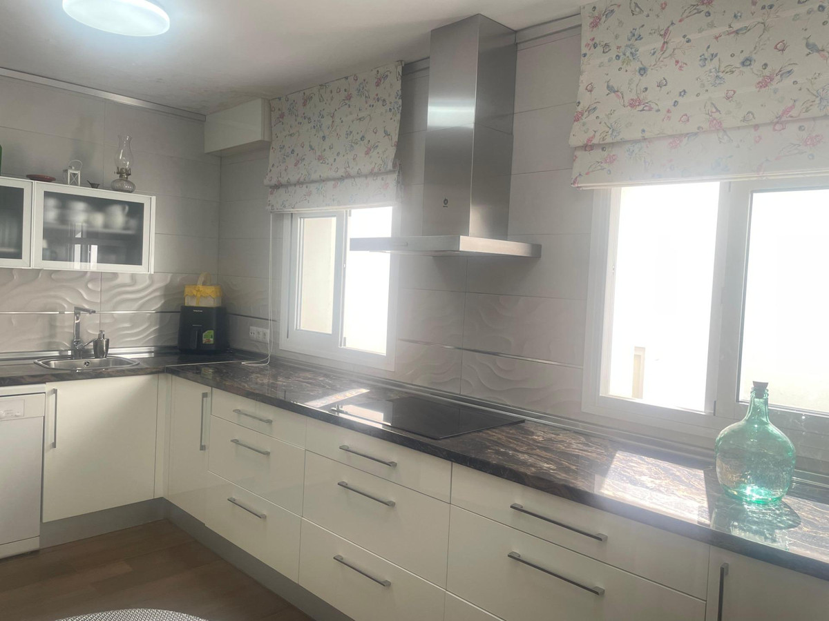 Originally a three-bedroom apartment, the layout has been cleverly modified to create a larger and more functional space. The third bedroom has been integrated into the kitchen, resulting in a large kitchen-diner ideal for enjoying your daily meals and gatherings.