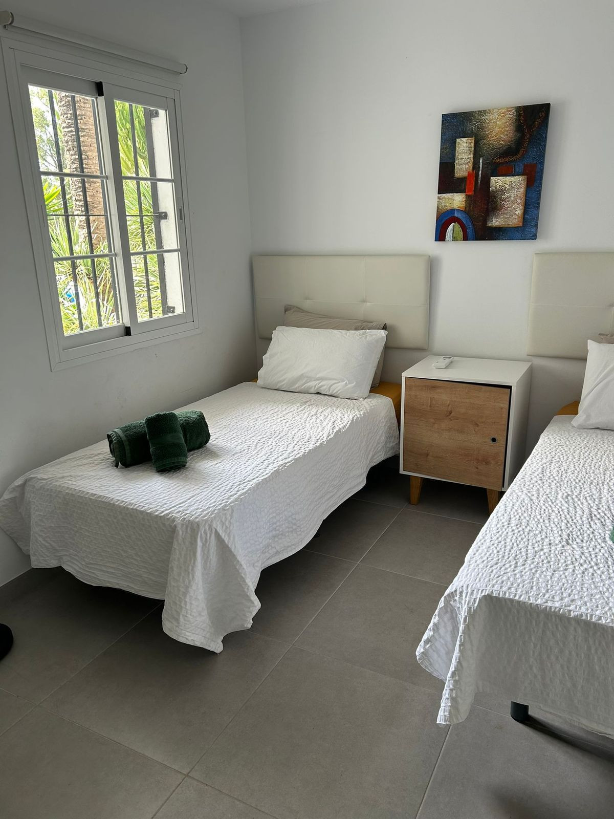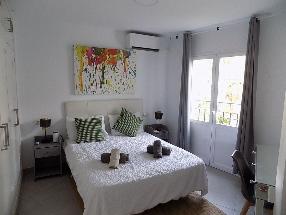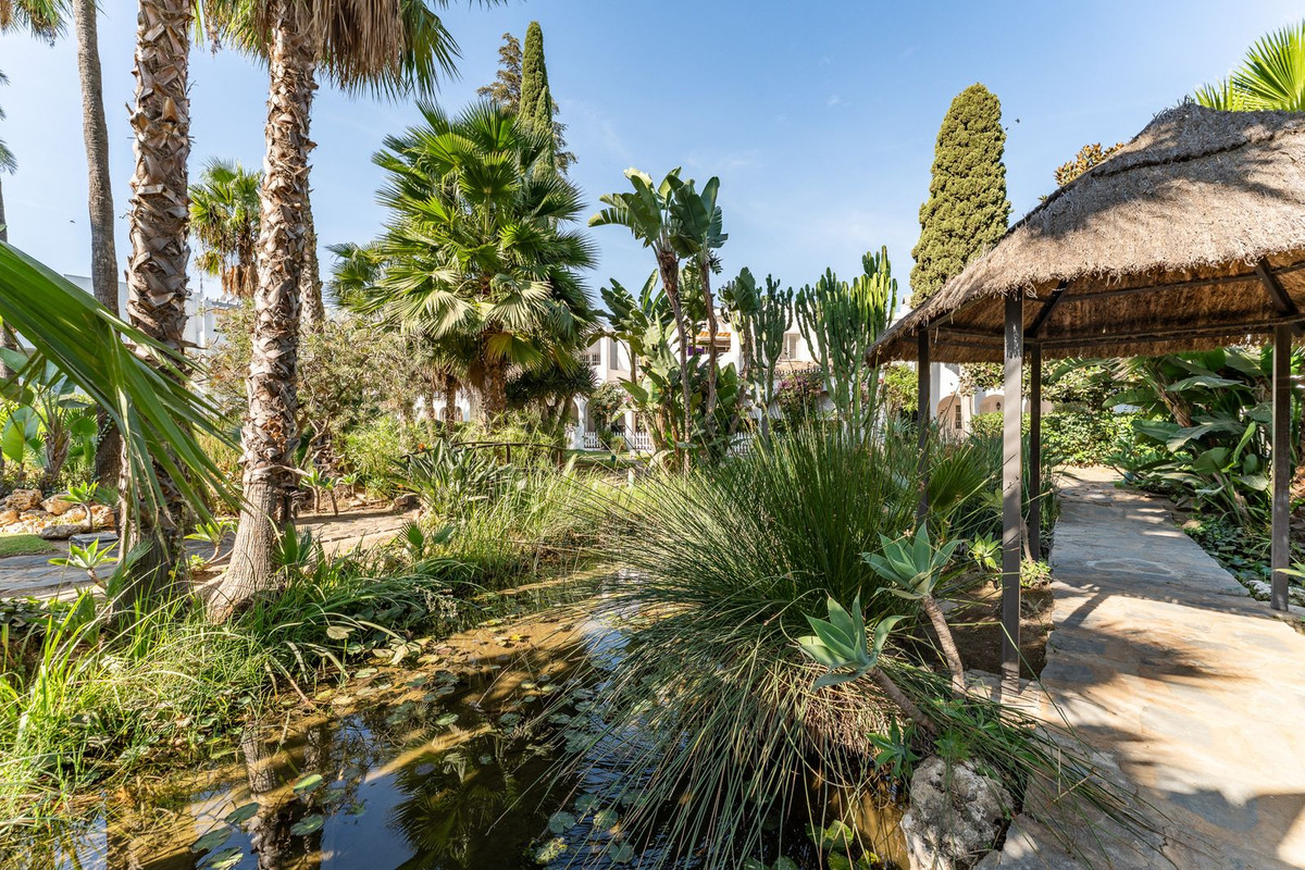 This beautifully renovated and show apartment quality townhouse is located in the prestigious Mijas Golf area within walking distance to all amenities and public transport. It is set in the tranquil gardens of a gated, secure community.There are two floors plus a large basement which has also been renovated to include a new bathroom, lounge and office (this could easily be a third bedroom if required). On the ground floor, there is a modern kitchen, hallway with guest toilet and a lounge/dining room area that exits onto the stunning community gardens. On the upper floor, there are two spacious double bedrooms and two modern bathrooms. The sale includes all furniture, fixtures and fittings. It is well located with easy access to shops, bars and restaurants. Just outside the urbanisation there is a bus stop that takes you to Fuengirola and Enterrios. There are two hotels close by; Hotel Tamisa and the luxury La Zambra Hotel. In addition,there are two 18 hole golf courses and a driving range next to the property that includes an excellent bar/restaurant which is open all day to the general public. The house is ideal for use as a holiday home (there is an existing touristic licence) or long/short term rental investment. 7 minutes to La Cala de Mijas. 5 minutes to Fuengirola. Viewings can be at short notice if required. Open to offers.