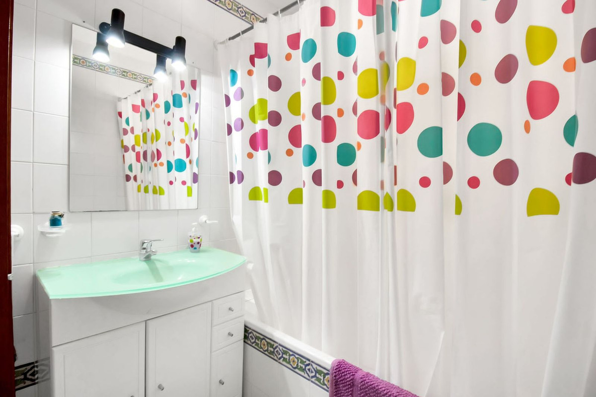 The main bedroom has long windows with plenty of light and an adjacent bathroom..
