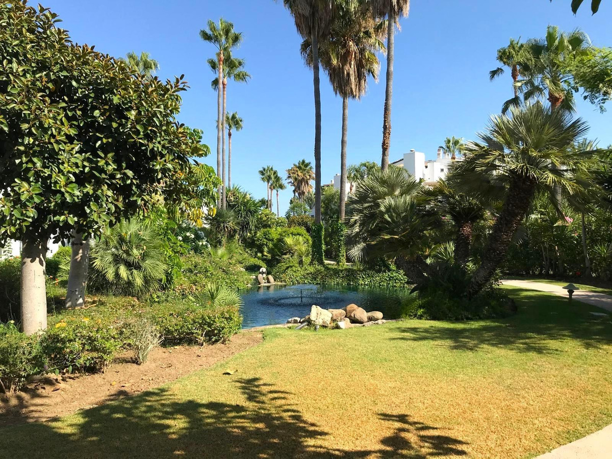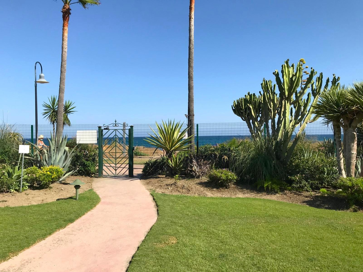 Beautiful 90 m2 apartment with 2 bedrooms and 2 bathrooms, a terrace with garden views, and direct access to the beach in an exclusive Estepona development.