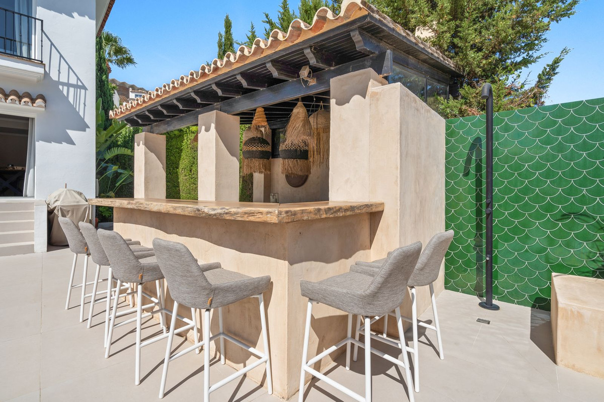 Tucked away in a quiet cul-de-sac, this charming Andalusian-style villa offers privacy, stunning views of La Concha, and one of the best locations in Marbella. Just a short stroll from Puerto Banús, Centro Plaza and the beach, the property combines traditional character with a unique “private beach club” atmosphere.