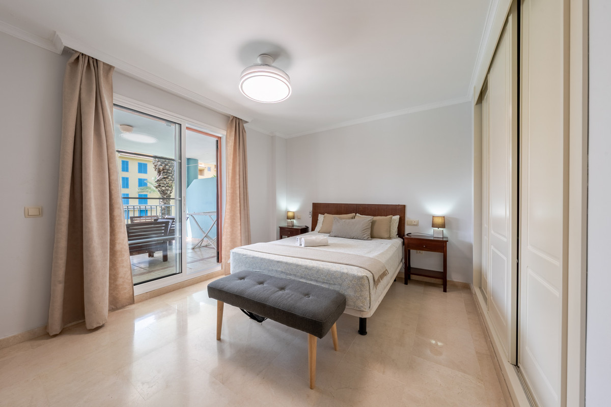 Step outside onto your private covered terrace and take in stunning views of the marina. The apartment is in a secure building with a lift and surveillance cameras, and you’ll find a communal pool and garden to enjoy sunny days. No private garage, but there’s easy access to transport and plenty nearby: shops, a children’s playground, schools, the town, port, beach, and even golf courses are all close.