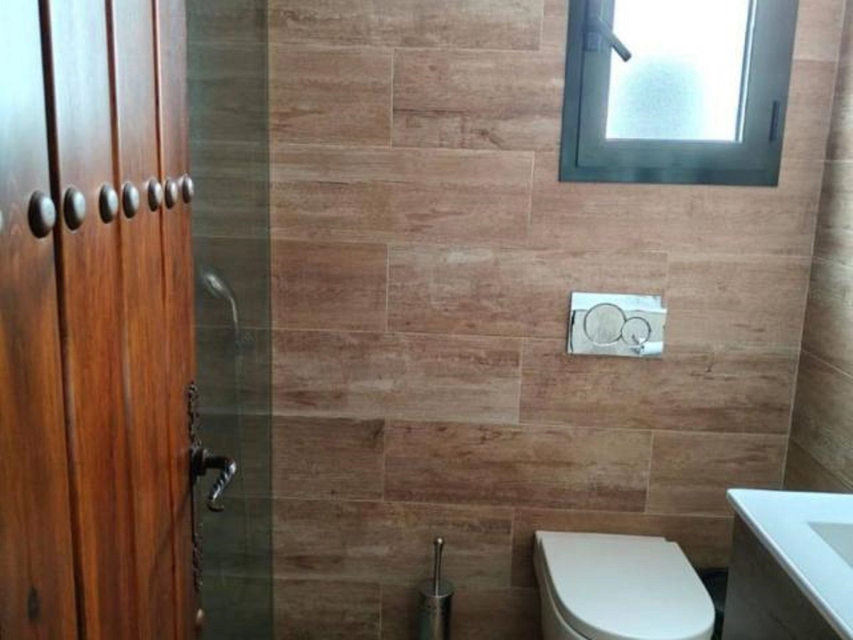 The main floor has an elegant living room with access to the L-shaped terrace, a spacious kitchen-diner of approximately 30 m² with space for a large table seating up to 8 people and direct access to the terrace. On this level you will also find the master suite, with its fully renovated bathroom, as well as a guest toilet.