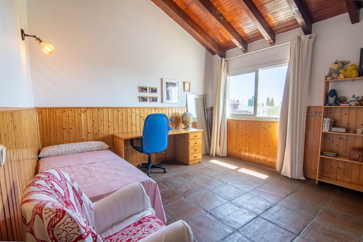 The generous 800m2 plot makes it unique and as it is mostly flat and has a small area of lawned garden, the rest is terracota terrace so a very easy garden to maintain. It also has a small fruit orchard/allotment area. The villa is on two levels, on the ground floor is an entrance hall with guest cloakroom, an excellent top quality open plan kitchen providing a very spacious area with lots of cupboards and appliances. A wonderful open plan dining and lounge area with patio doors that lead you onto the beautiful spacious covered terrace perfect for all year round use and enjoyment. The fireplace gives the living room a very homely feel this same floor is large bedroom with ensuite bathroom.