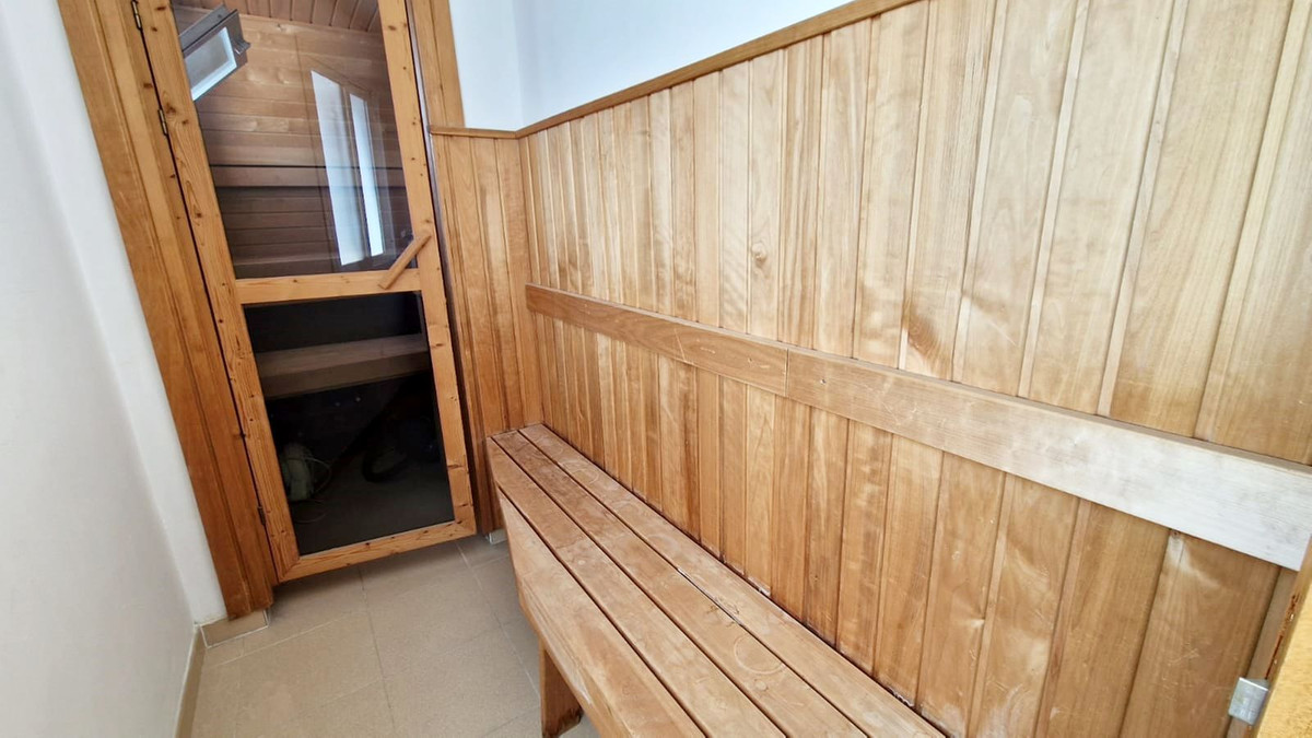 The interior features a modern fully fitted kitchen, a separate dining area, and a spacious lounge with fireplace that opens directly onto the terrace. There are 3 double bedrooms and 2 bathrooms, including a master suite with en-suite bathroom and a private sauna. Designed for comfort and style, the property combines elegant finishes such as marble and wood flooring with all modern conveniences.