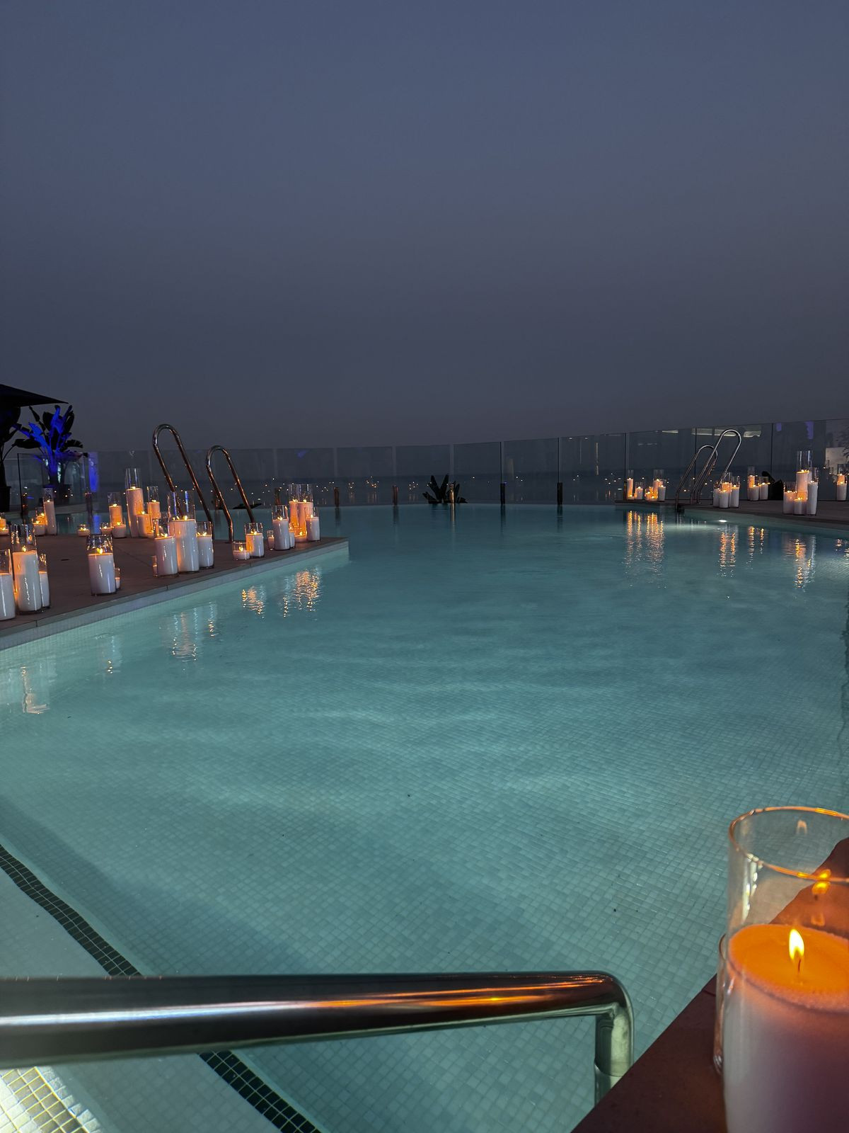 110 m² infinity pool, children’s pool, solarium, viewing deck, Pool Bar, and outdoor lounge areas.