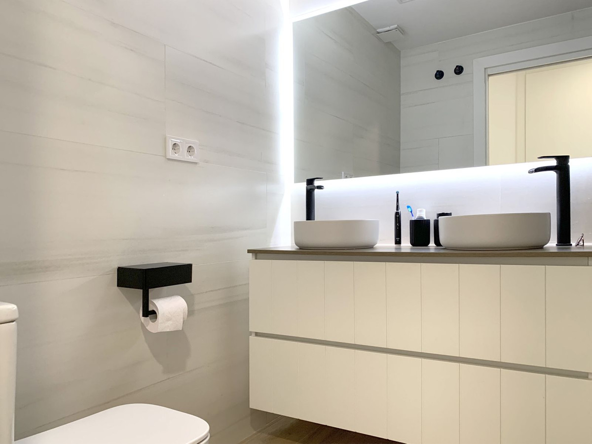 Discover your new home in this spectacular renovated ground-floor apartment! Enjoying a prime location just 15 minutes from Estepona and San Pedro, this bright 106 m² apartment features two spacious bedrooms, one en suite, perfect for enjoying tranquility and comfort. The modern kitchen and renovated bathrooms add a contemporary touch to the cozy atmosphere.