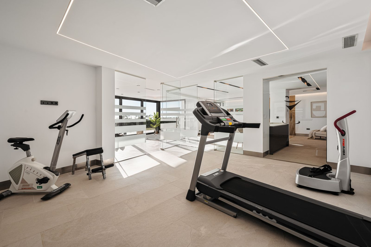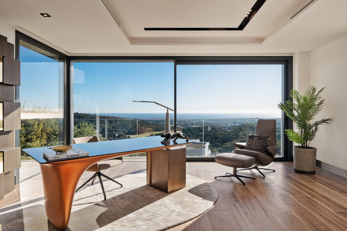 Beautifully presented and superbly equipped, the eco-friendly and energy-efficient home comes for sale in excellent condition and with many luxurious features. Thanks to glass doors and huge windows, there is plenty of natural light. Additional highlights include a Home automation system, air-conditioning, wooden and stone floors with underfloor heating throughout the house, double-glazing, Internet Wi-Fi, fitted wardrobes, etc. The garden boasts a sustainable landscaping and automatic irrigation system. With 24-hour security service, video and security entrance, alarm system, electric blinds, and security shutters, this villa offers peace of mind and safety. Moreover, the inclusion of surveillance cameras and family-friendly and pet-friendly policies ensure a secure and inclusive living environment. Embrace a modern, sophisticated lifestyle in this exceptional house in Sotogrande, while enjoying close proximity to the elite resort town, sea, port and golf!