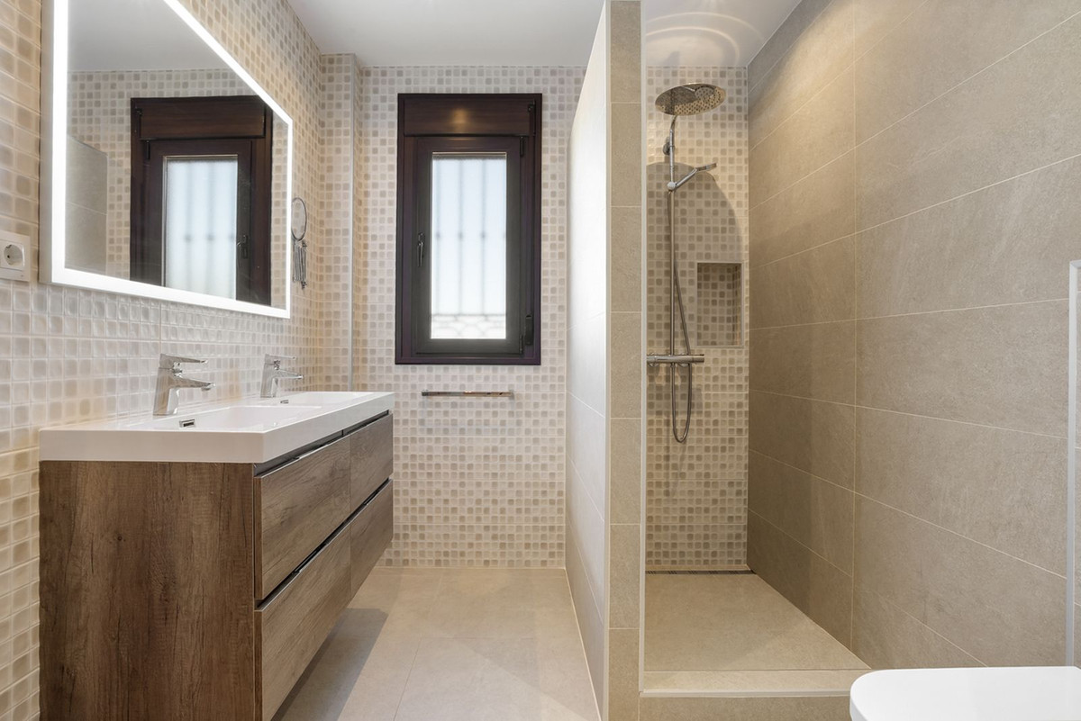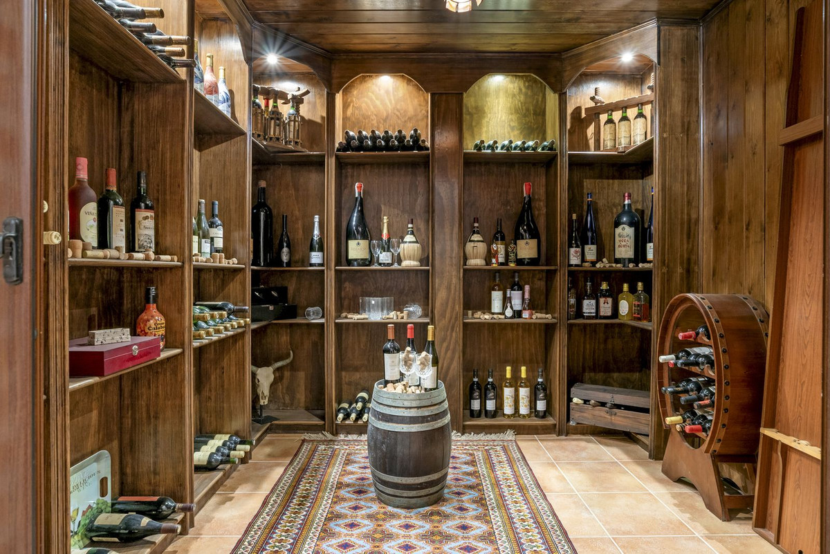 The villa benefits from a full basement. Here you will find a large games room, a fully equipped gym, and a cosy wine cellar. The 5th bedroom, perfect for guests, is also located here, along with a practical laundry room. Not to forget, an XXL garage with ample space for 4 cars plus scooters or other leisure equipment. A soundproofed music studio has also been created.