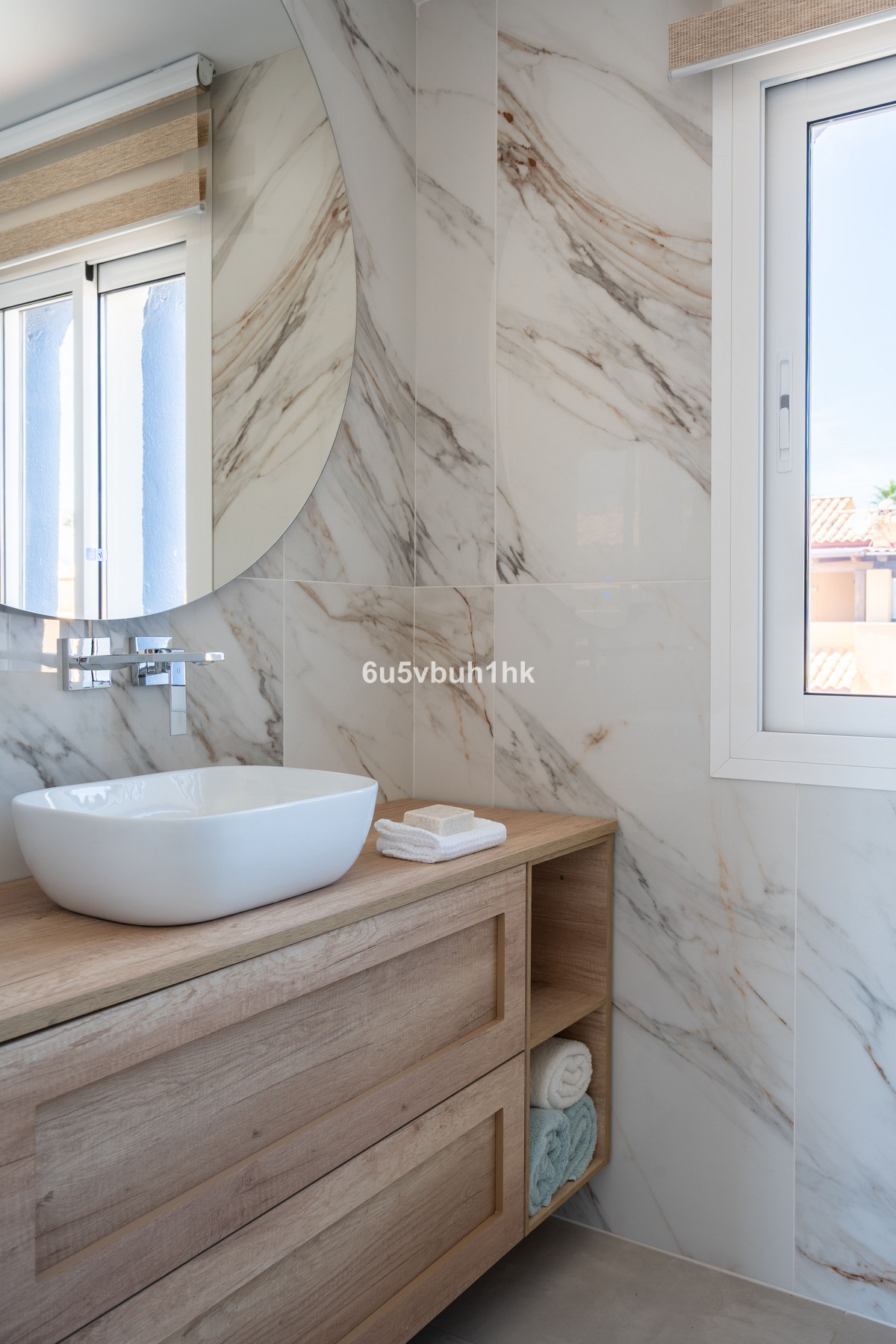 A staircase with led lights and sensors leads up to the first floor with two ensuite bedrooms. The first bedroom is large with plenty of built in wardrobes and a terrace with stunning sea views. The ensuite bathroom is stylish and a perfect size. The second bedroom also has built in wardrobes and a modern bathroom.