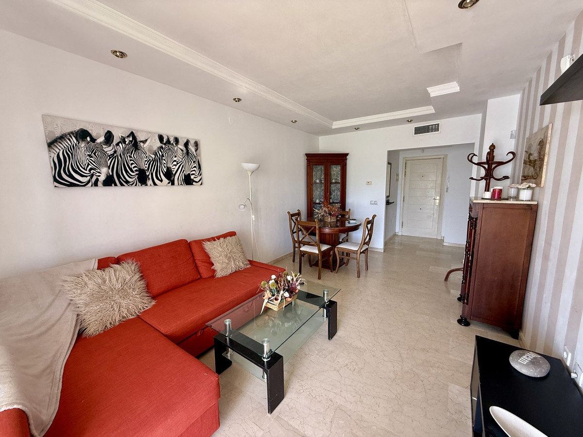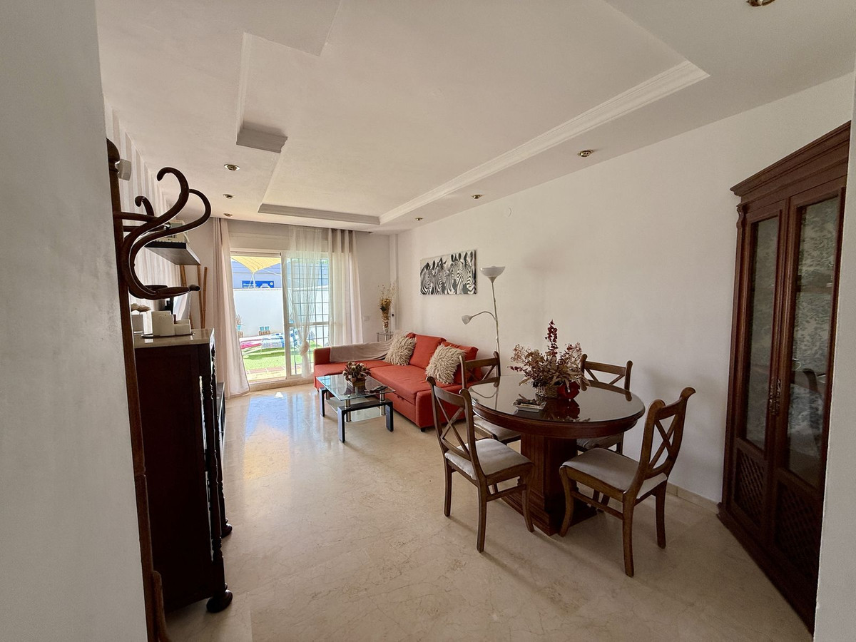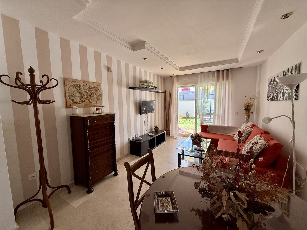 Embrace the laid-back lifestyle of the Costa del Sol with this charming two-bedroom apartment, nestled just a 5-minute walk from the beach and mere minutes away from the vibrant energy of bars, shops, and restaurants. Set within a lovely urbanization boasting expansive mature gardens, this ground floor apartment offers the ideal blend of convenience, comfort, and relaxation.