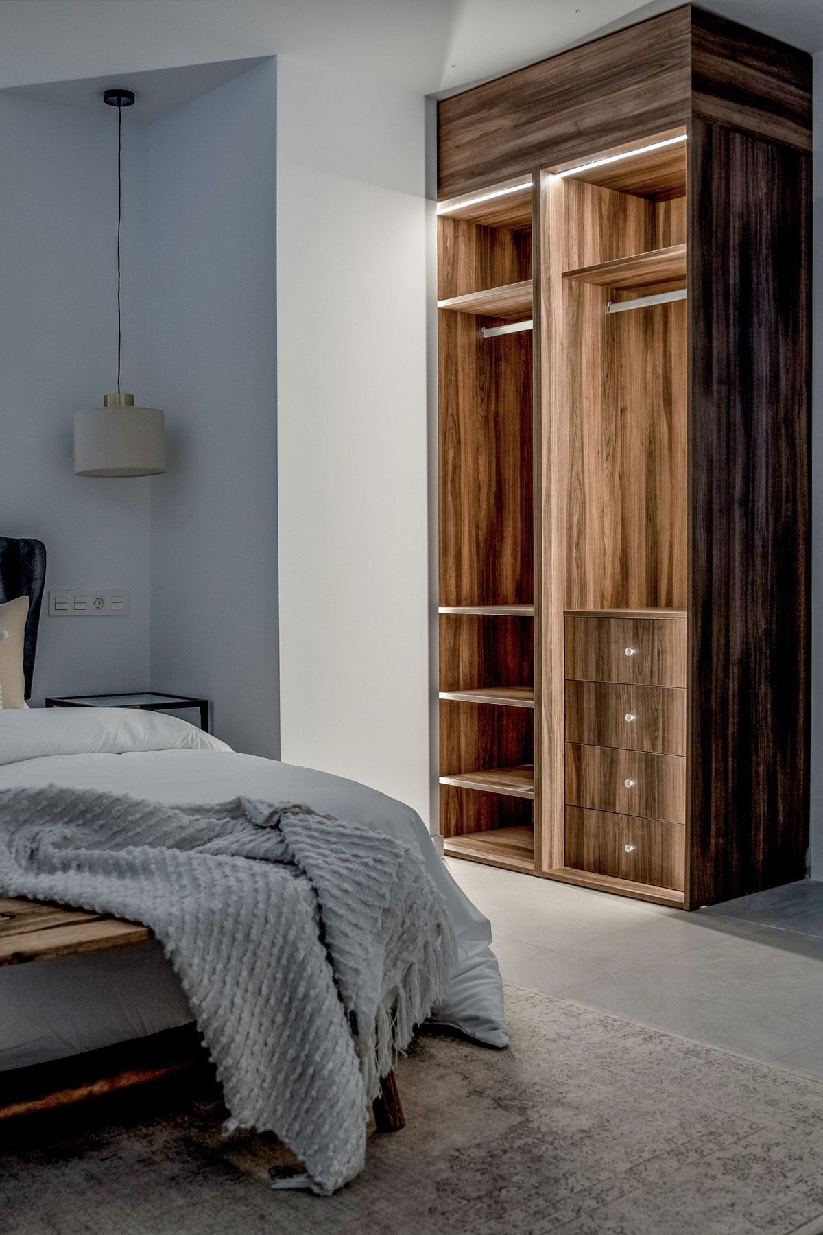The open-plan living and dining area welcomes you with high ceilings and stylish spotlights, creating an ambiance of modern luxury and comfort. Whether you're entertaining guests or enjoying quiet evenings in, this space is designed for both relaxation and socializing.