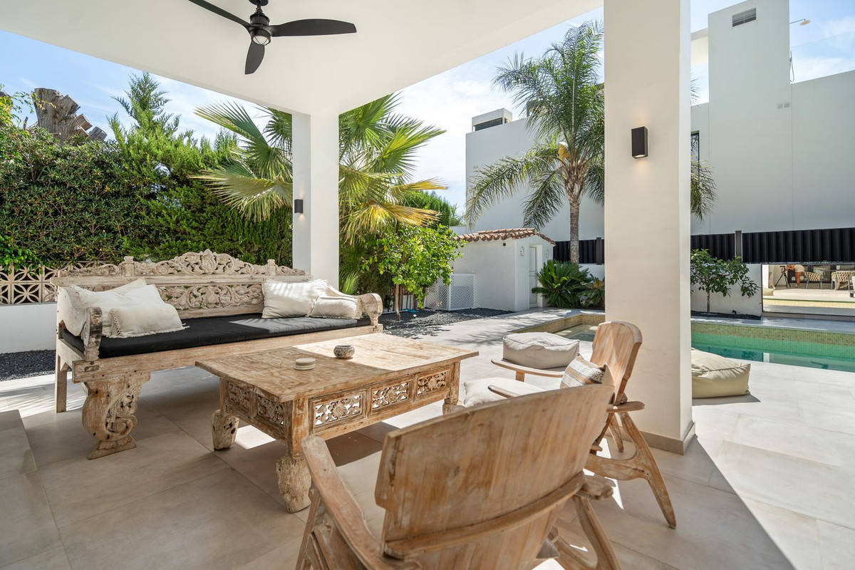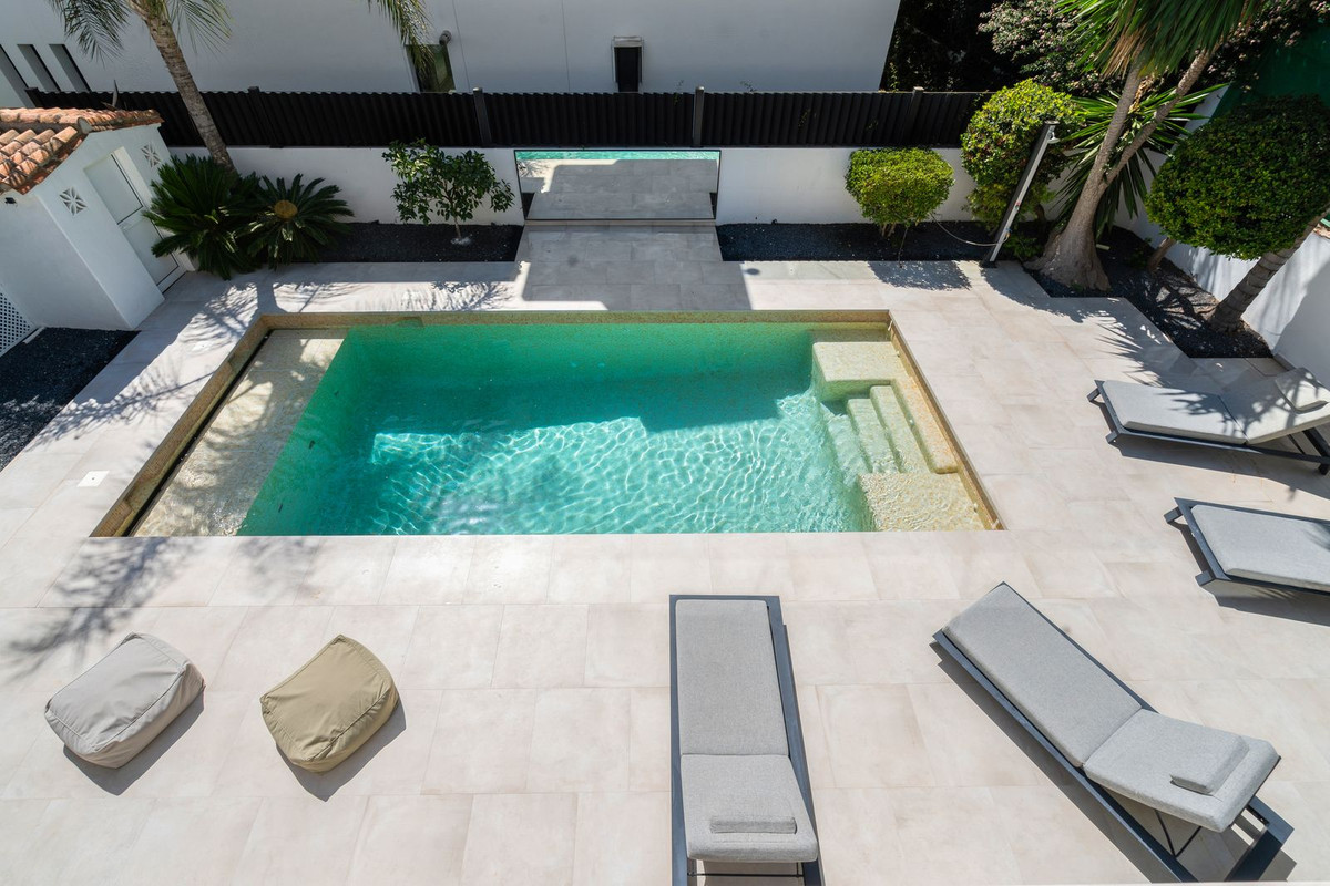 This outstanding luxury villa, fully renovated to the highest standards in 2022, is located just 200 metres from the beach in Marbesa—one of Marbella’s most prestigious and sought-after residential areas, ideally positioned near Elviria and the charming port of Cabopino. Occupying a south-facing plot of 527 m², the property offers 344 m² of elegant living space across two floors, perfectly complemented by expansive outdoor areas designed for refined year-round living.