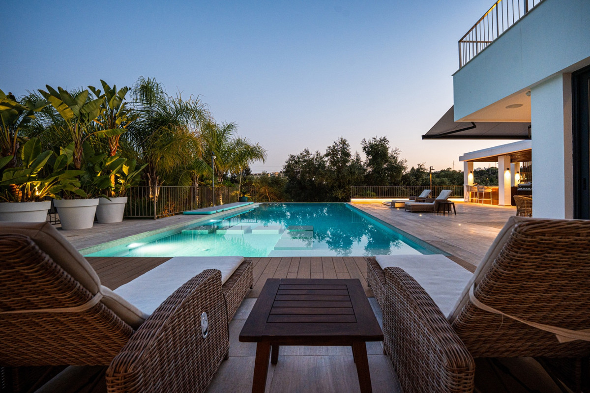 This is a luxury home in Marbella’s most exclusive gated community. The villa is spread over three levels and combines modern design with Mediterranean charm. It offers panoramic views of the golf course and mountains, with a south-facing position that ensures natural light throughout the day. Inside, the home features spacious open-plan living, a contemporary kitchen, and seamless access to the terrace with pool, jacuzzi, and outdoor kitchen.