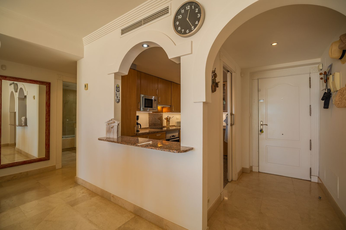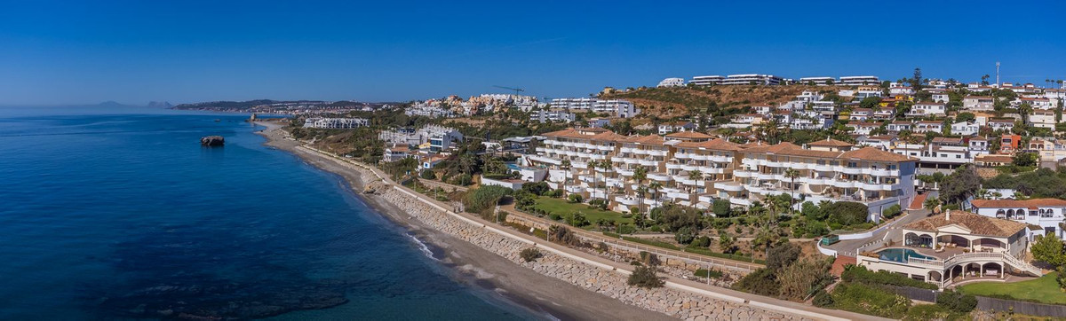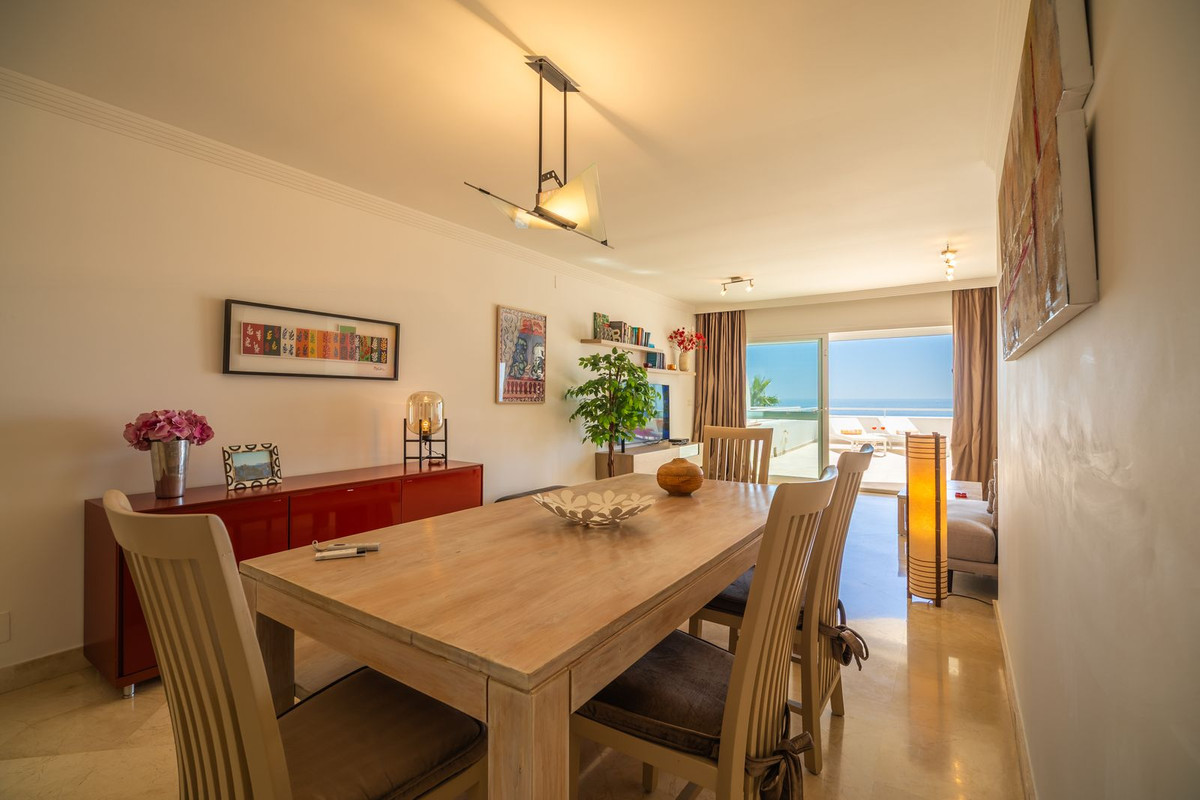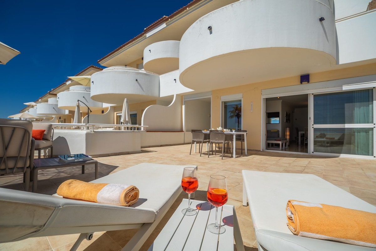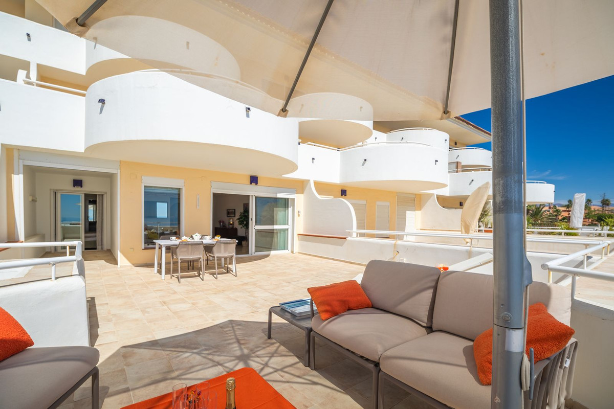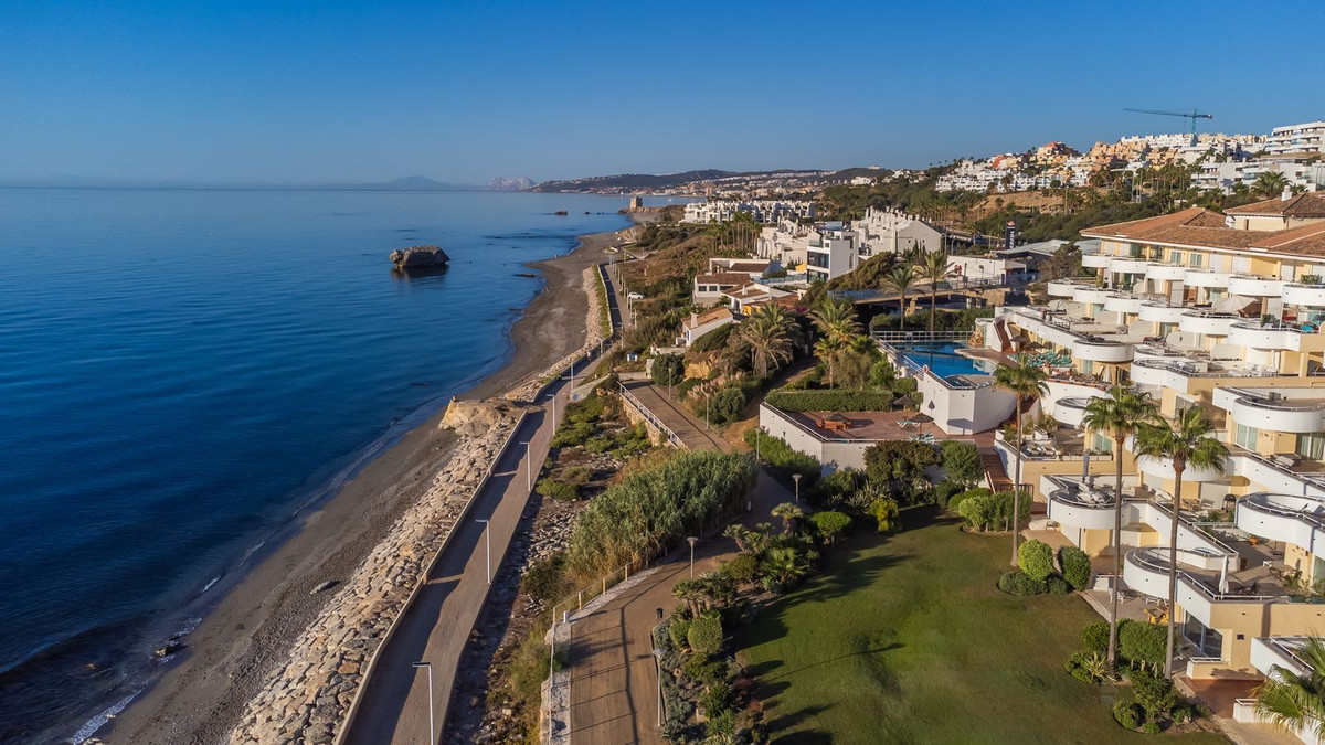 MAGNIFICENT BEACHFRONT APARTMENT WITH STUNNING VIEWS OF THE SEA, BEACH, MOUNTAINS AND THE AFRICAN COAST, FEATURING A SPACIOUS 77m² TERRACE. This property is located in the Estepona area, between Estepona town and the charming Puerto de la Duquesa — just a 5-minute drive from all kinds of amenities and several golf courses of varying levels, including the award-winning Finca Cortesín, consistently recognized as Spain’s best golf resort and host of prestigious tournaments such as the 2023 Solheim Cup and the Volvo Masters. Conveniently situated on the same level as the parking area, with direct access to the residence, the apartment also enjoys an elevated position (4th floor) above sea level from the terrace. Facing southeast, it offers panoramic sea views over beautifully landscaped gardens stretching all the way to Africa — the perfect setting to enjoy spectacular sunrises. The development is very well maintained, with spacious green areas and a large swimming pool. A garage parking space and storage room are included. We highly recommend a viewing — JUST LISTED!