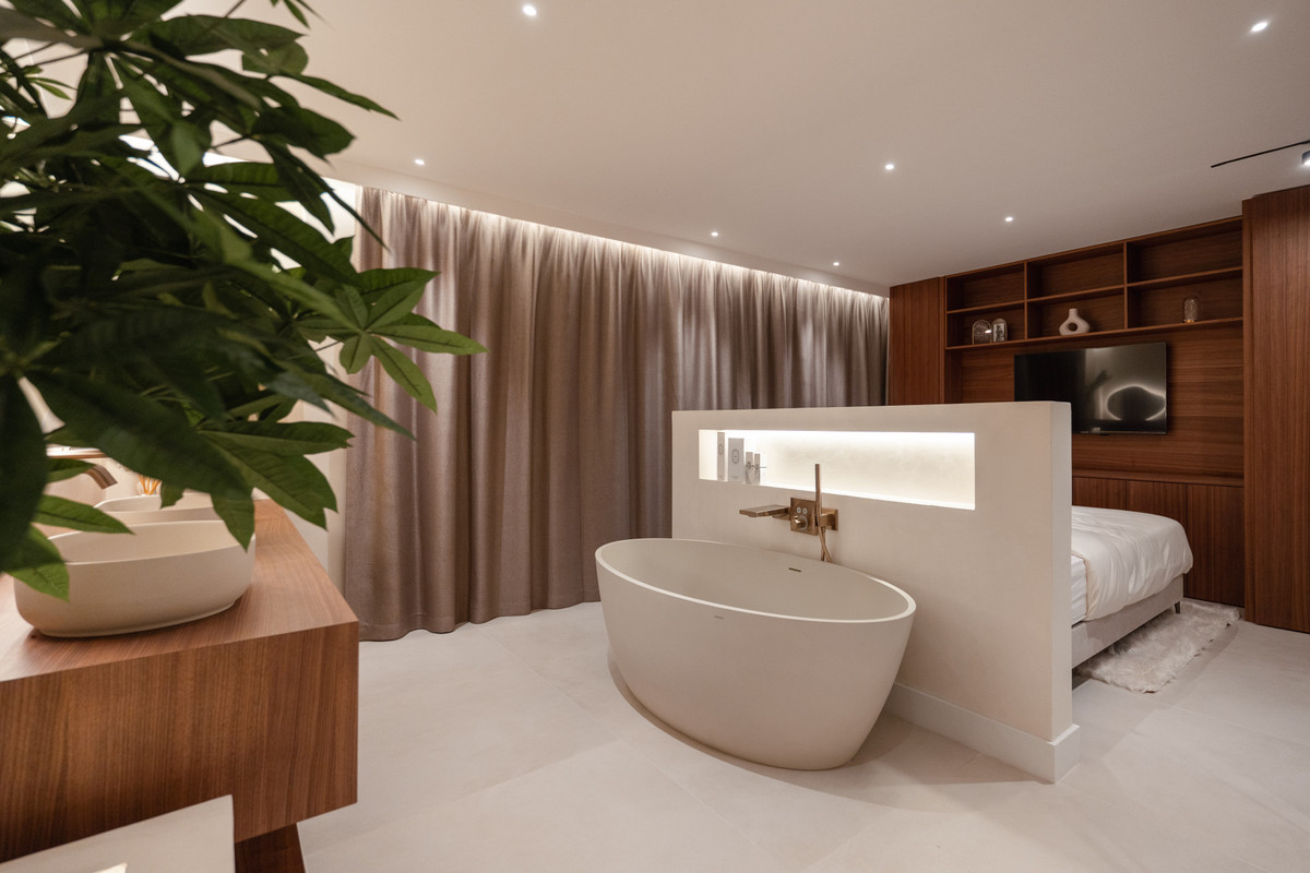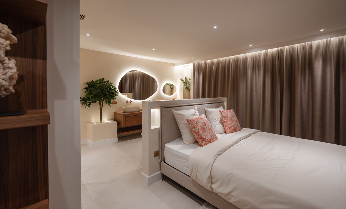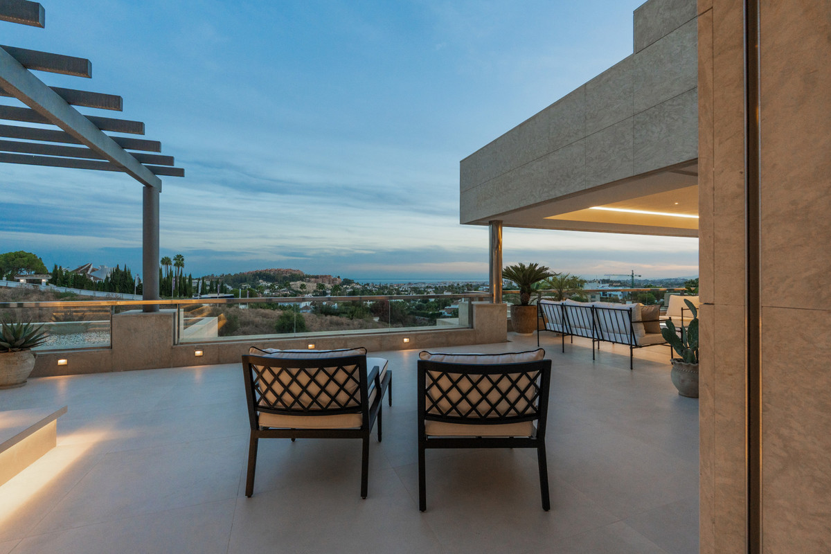 This exceptional property features a high-end open-plan kitchen, complete with double wine coolers and premium finishes, seamlessly blending functionality with contemporary Nordic-style décor. Inspiring furniture enhances the serene, inviting atmosphere, while natural light floods the interiors, offering breathtaking views of the Mediterranean Sea, Gibraltar, and Morocco.