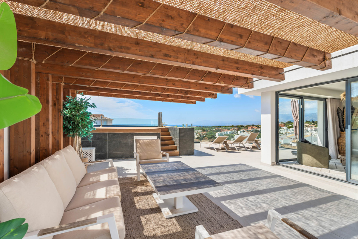 This contemporary duplex penthouse in Marbella East is thoughtfully designed across two levels, combining modern architecture with well-defined living spaces. Every detail has been considered to maximize natural light, seamless indoor-outdoor living, and privacy.
