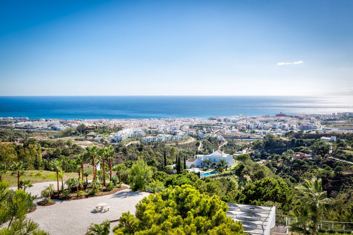 Magnificent contemporary-style villa, located just a 5-minute drive from the center of Estepona, in a privileged natural setting offering complete privacy and panoramic views of the sea, mountains, Gibraltar, and Africa. The property sits on a large plot of 15,500 m², of which 12,000 m² are completely flat, providing ample space for stables and a riding arena, tennis court, and other recreational or sports possibilities. The estate features around 30 olive trees, allowing for the production of your own olive oil, and a pine forest that enhances privacy and the natural charm of the surroundings. The property is situated at 200 m above sea level, offering 280º panoramic views.