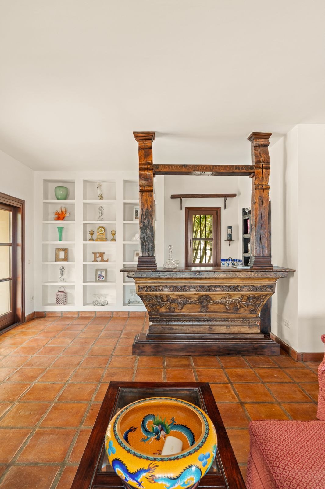Set on a private 2,900 m² plot, the villa offers over 900 m² of built space. A dramatic double-height entrance hall leads into bright open-plan living areas with fireplaces, feature wet bar and direct access to expansive terraces and gardens with two swimming pools, jacuzzi and outdoor dining. The bright, open kitchen has connecting pantry, laundry room and cozy snug with access to the gardens and outdoor barbeque area. The ground floor also features an office, TV lounge and hobby room which could easily be converted into further en-suite bedrooms, allowing the villa to adapt to larger families or guests.