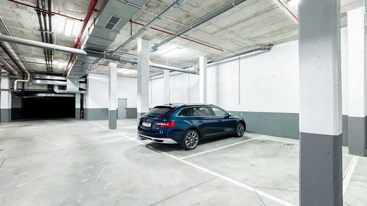Inside, both bathrooms are finished to a high standard with underfloor heating, while the kitchen comes fully fitted with top-quality appliances. The apartment is full of thoughtful details: electric blinds, premium wood and stone finishes, and carefully chosen wall materials that enhance both comfort and acoustics. A separate utility room adds extra practicality.