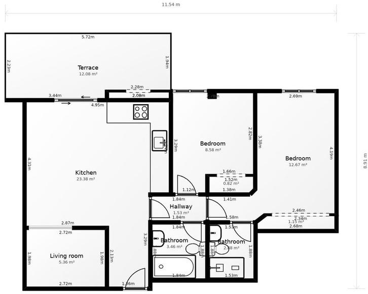 2 Bedrooms, 2 Bathrooms, Built 90 m², Terrace 16 m².