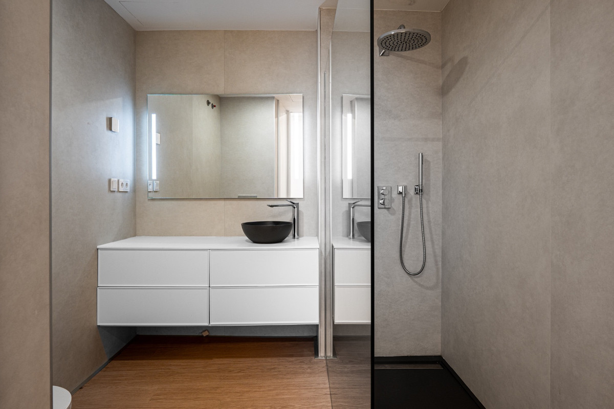 Apartment Sea Breeze in Estepona offers rare luxury living on the beachfront. This spacious home combines two apartments into one, giving you four bedrooms and three bathrooms with open plan living, dining, and kitchen areas. The property is in excellent condition, fully renovated, and move-in ready. A large private terrace and an additional terrace from the master bedroom look directly over the sea, offering uninterrupted views.