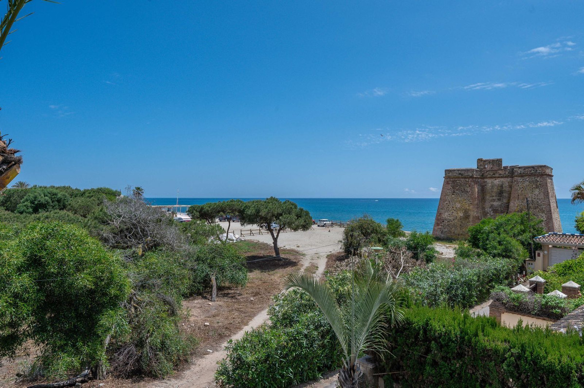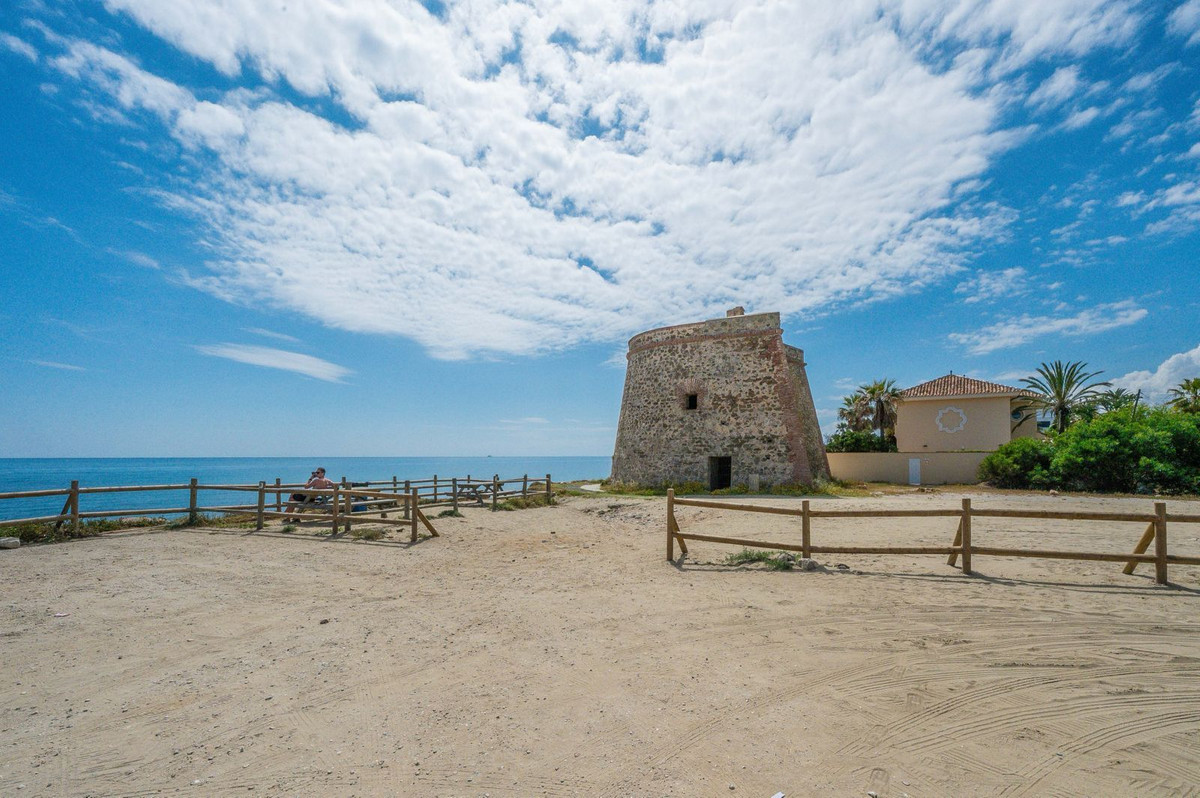 Upper level: Three well-presented double bedrooms, including the master with en-suite bathroom and access to a 36m² terrace offering breathtaking sea views and vistas of the historical 18th-century Torreón de Lance de las Cañas.