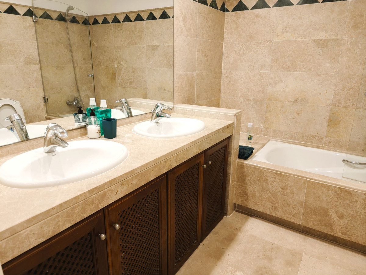 This excellent three-bedroom first floor apartment is located in the prestigious San Roque Club and combines comfort, style, and an unbeatable location. The property features a spacious living and dining room, a large fully equipped kitchen, two bathrooms, a guest toilet, and a spectacular 77 m² terrace with brand-new motorized awnings, offering stunning views of the golf course, the sea, and the surrounding countryside. The master bedroom includes an en-suite bathroom and direct access to the main terrace, while the two additional bedrooms open onto a second terrace.