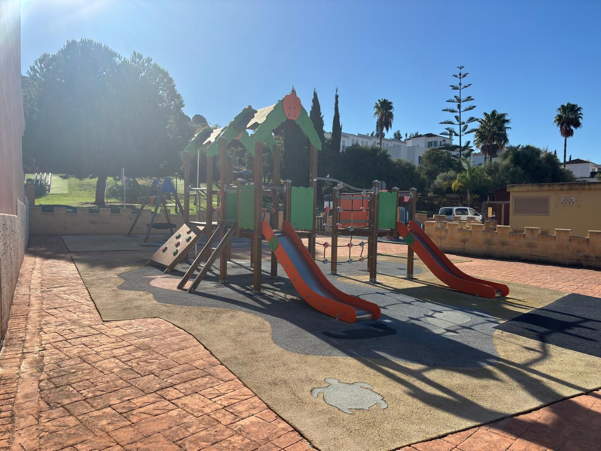 The pool area is beautiful with a well maintained lawn, chiringuito area, and Mountain views. Tropical plants surround the heated pool to create an oasis of serenity.
