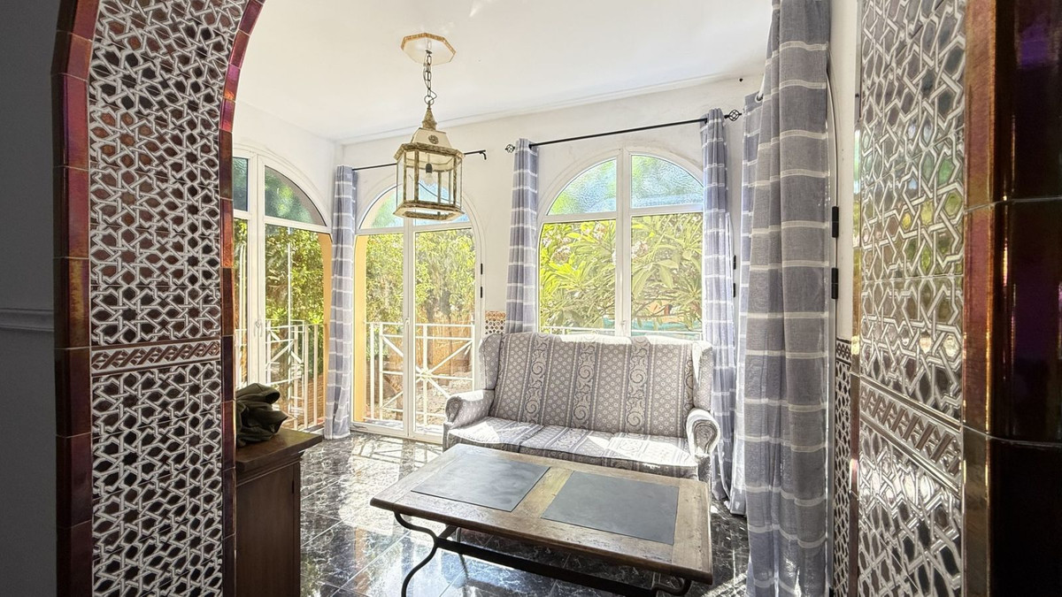 Unique Moroccan-Style Villa with Charm, Space & Character. A truly rare opportunity to own a one-of-a-kind Moroccan-style villa, beautifully renovated (except the kitchen) with meticulous attention to detail while preserving its authentic charm. Located within walking distance to all amenities, this spacious property offers both timeless elegance and modern comfort. The villa features 5 generous double bedrooms and 4.5 bathrooms, with two of the bedrooms enjoying attached rooms ideal for a home office or study. The top two bedrooms are exceptionally large, perfect as private retreats. There is a private swimming pool, mature fruit trees. Inside, the air-conditioned villa includes a basement entertainment level with a home cinema, pool table, and table tennis area. While the kitchen awaits a personal touch, the rest of the home has been recently renovated to a high standard. The property also includes a private garage and holds a tourist rental license, adding investment potential to its unique lifestyle offering. A truly special home full of personality, space, and style ready to be enjoyed as a private residence or luxury holiday retreat or rentals.