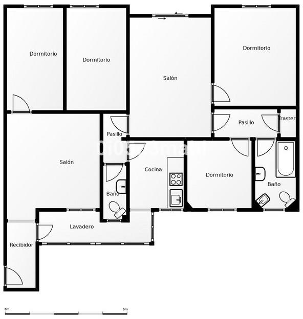This spacious and bright property, ideal for renovating to your liking, boasts an excellent layout. It consists of one double bedroom and three single bedrooms, a full bathroom, and a guest toilet. The large entrance hall and two spacious living rooms, one of which opens onto a terrace, are perfect for adapting to your needs. It also includes a laundry area.