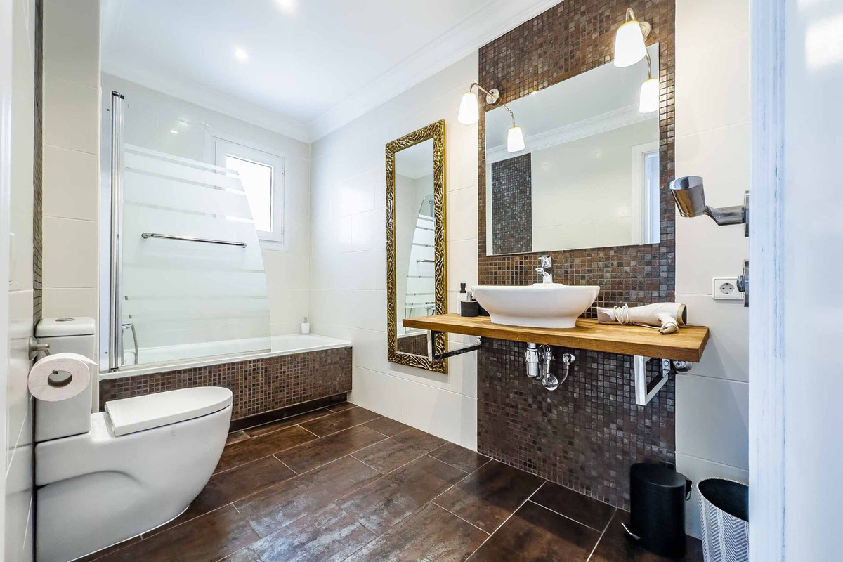 We are pleased to present this marvellous 4 bedroom 3.5 bathroom detached villa in the classic Andalucian style, constructed in 1988 & recently renovated to the highest standards. The property boasts mature gardens with both covered & open seating & dining areas, as well as a dedicated barbecue area, perfect for enjoying the wonderful climate and the sea & mountain views. The location is excellent, being a 5 minute drive from the beaches & Benalmadena Pueblo. The villa has parking for at least 4 cars, a large private pool, a solarium with magnificent views & 2 seating areas, bar, barbecue area, storage sheds, & trampoline. Entering on the upper level through the hall, we find an ample lounge with fireplace with access to the covered terrace, kitchen, dining room, & guest toilet. On the lower level there are 4 double bedrooms & 3 bathrooms, 2 of which are ensuite, & 2 with access to the pool and gardens.